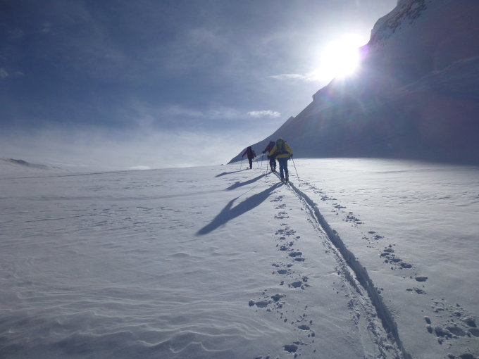 Sehr gut, guter Trittschnee auch über den schmalen Grat zum Gipfel