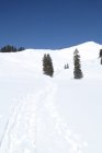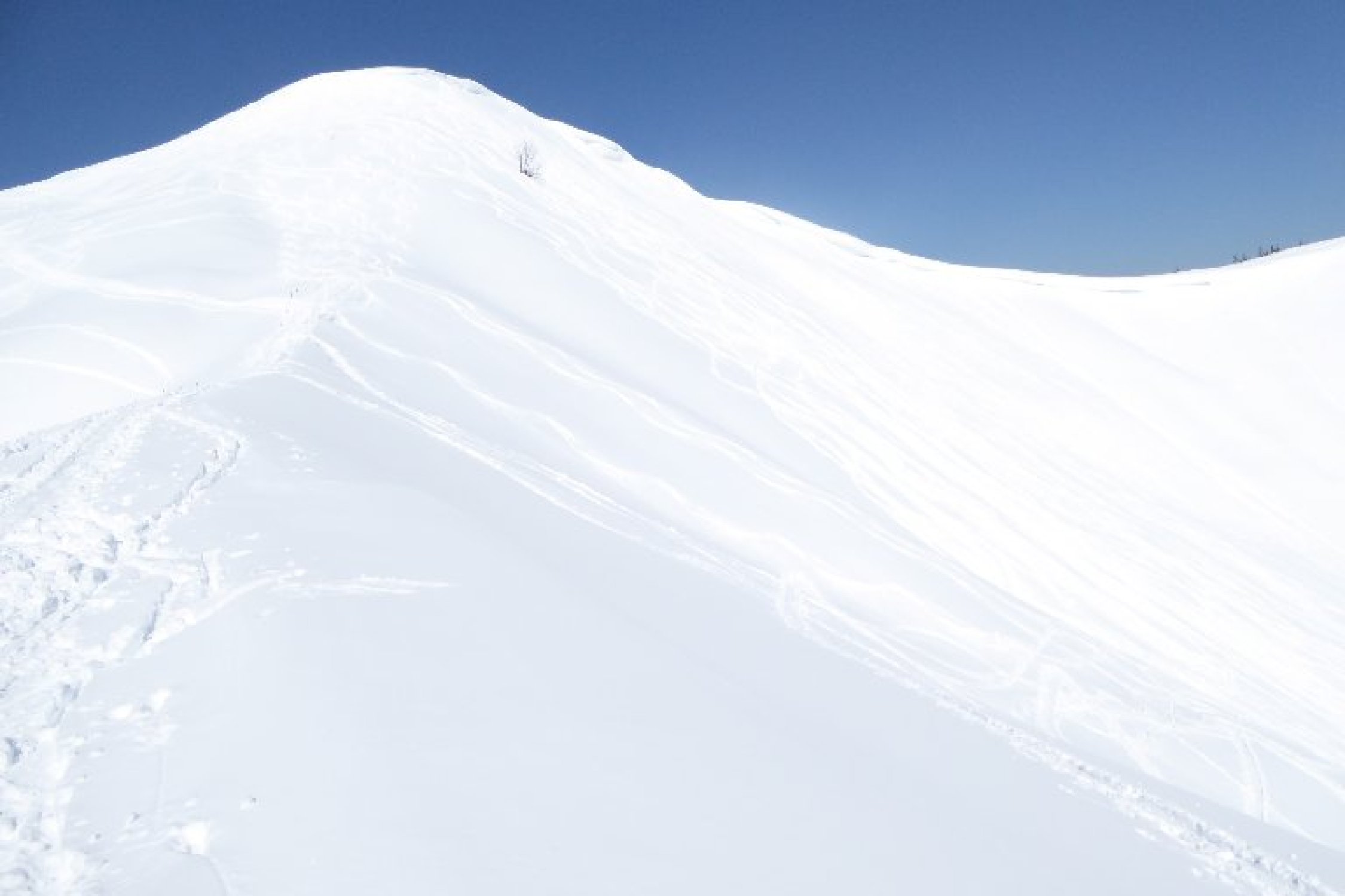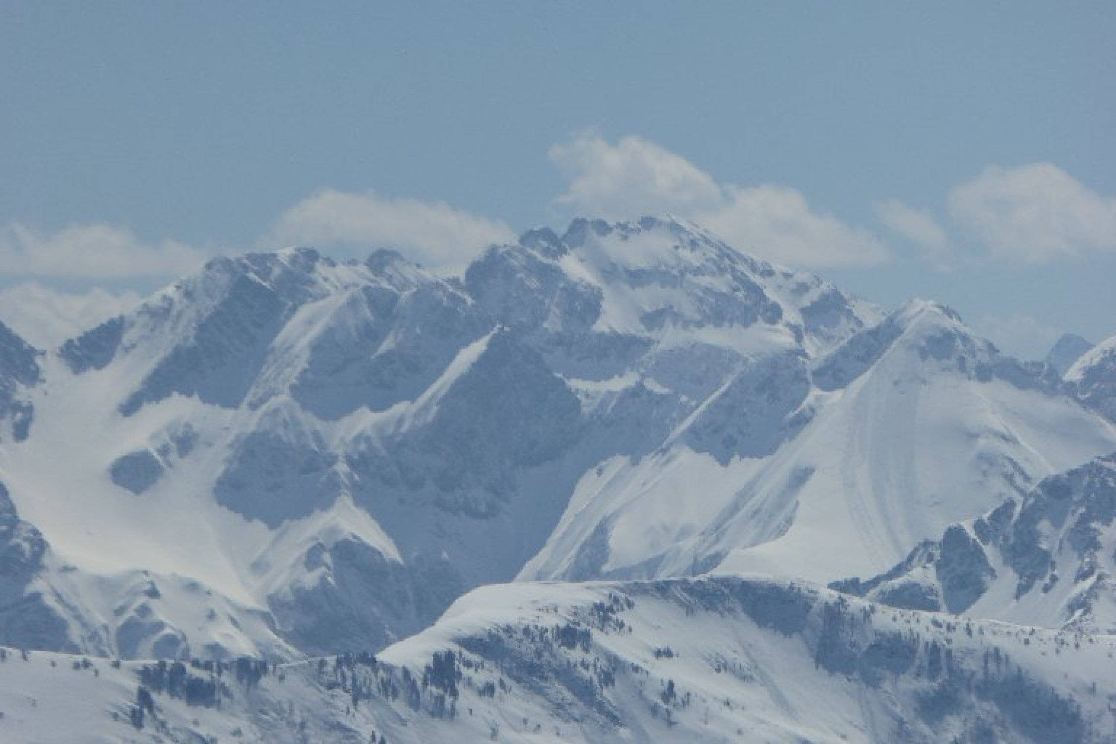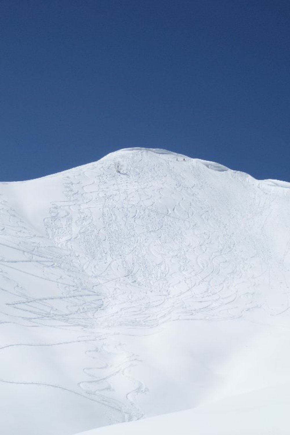 Nachmittags bollen die Südhänge schon auf und sollten auf keinen Fall befahren werden, wenn sich darunter Leute befinden.