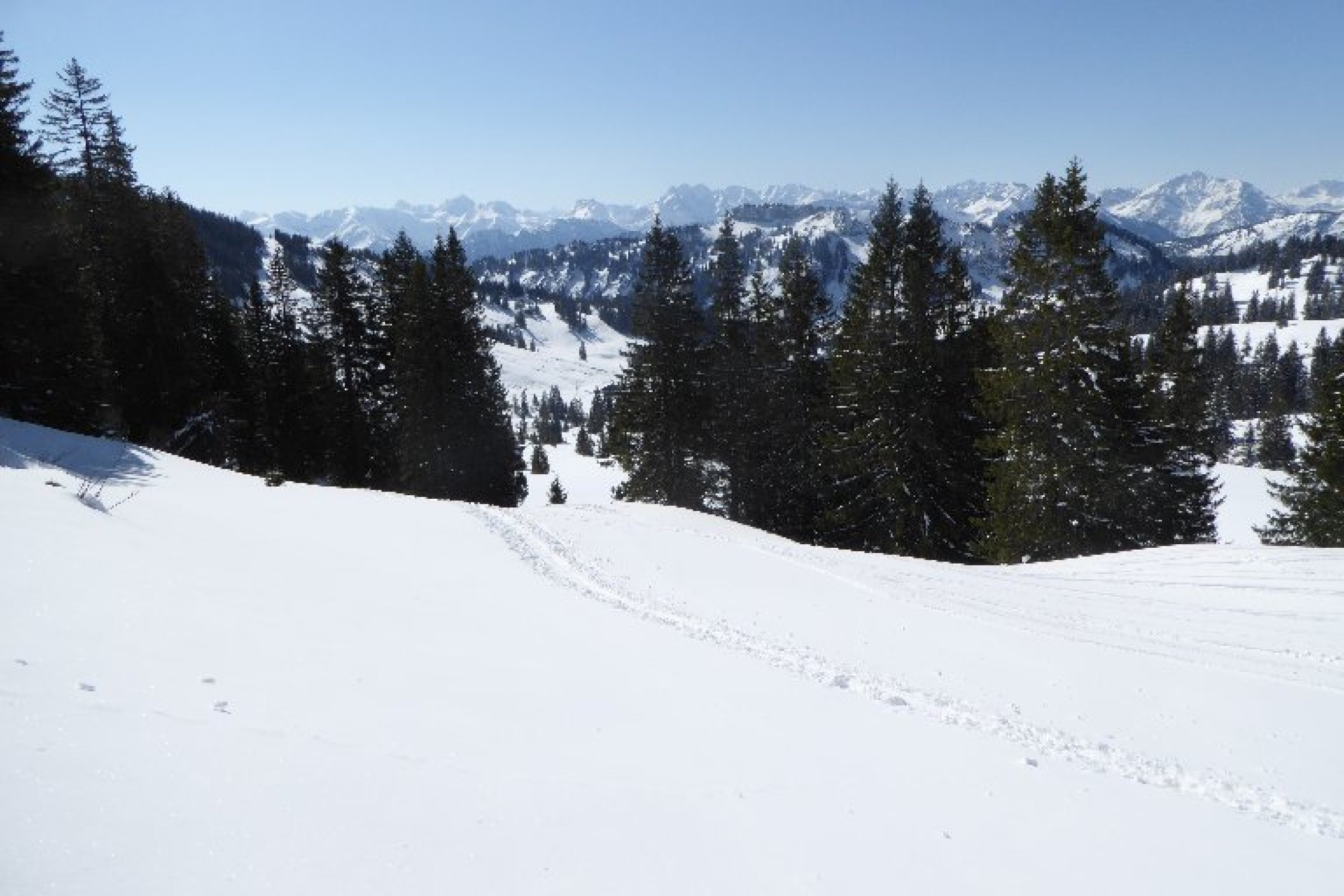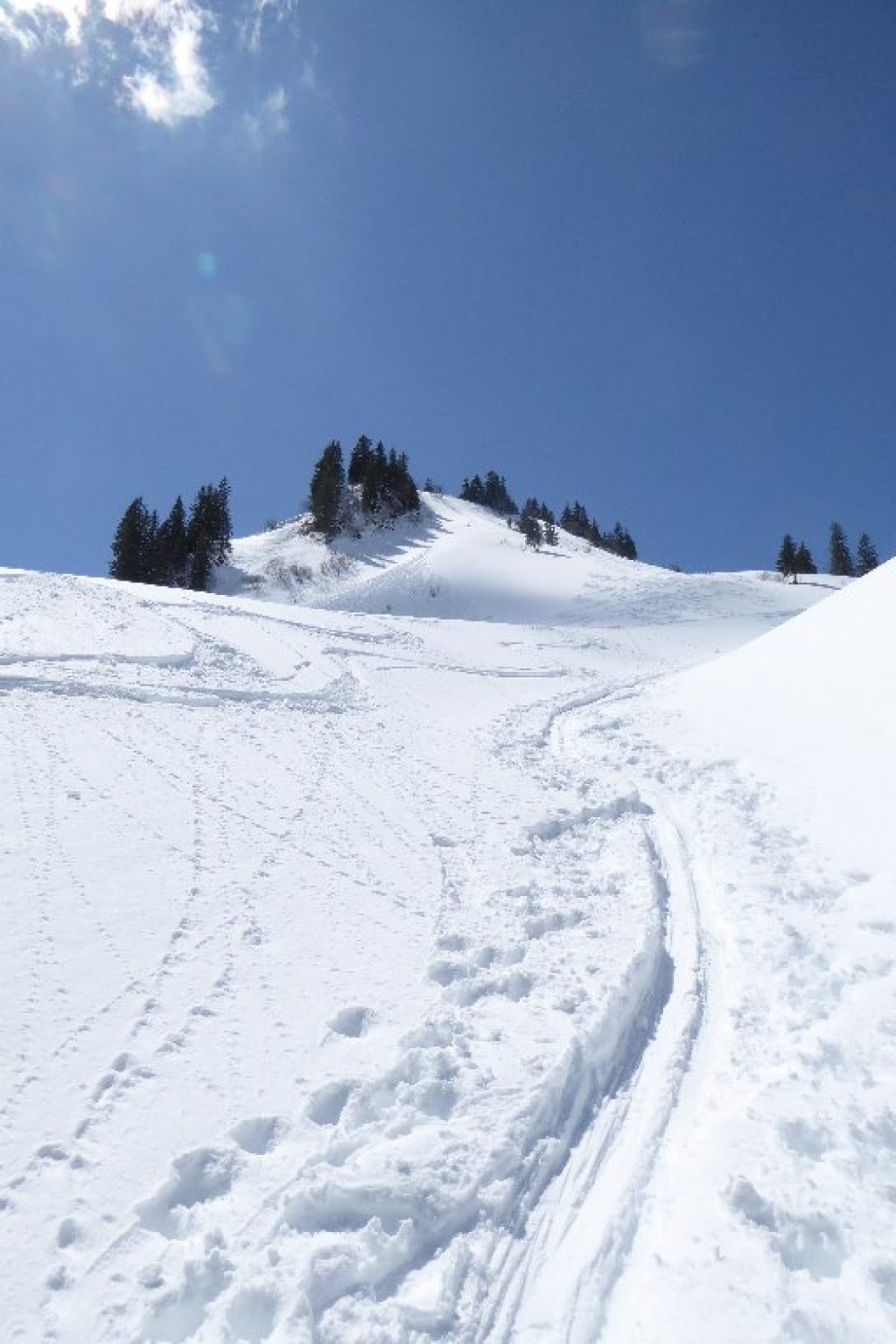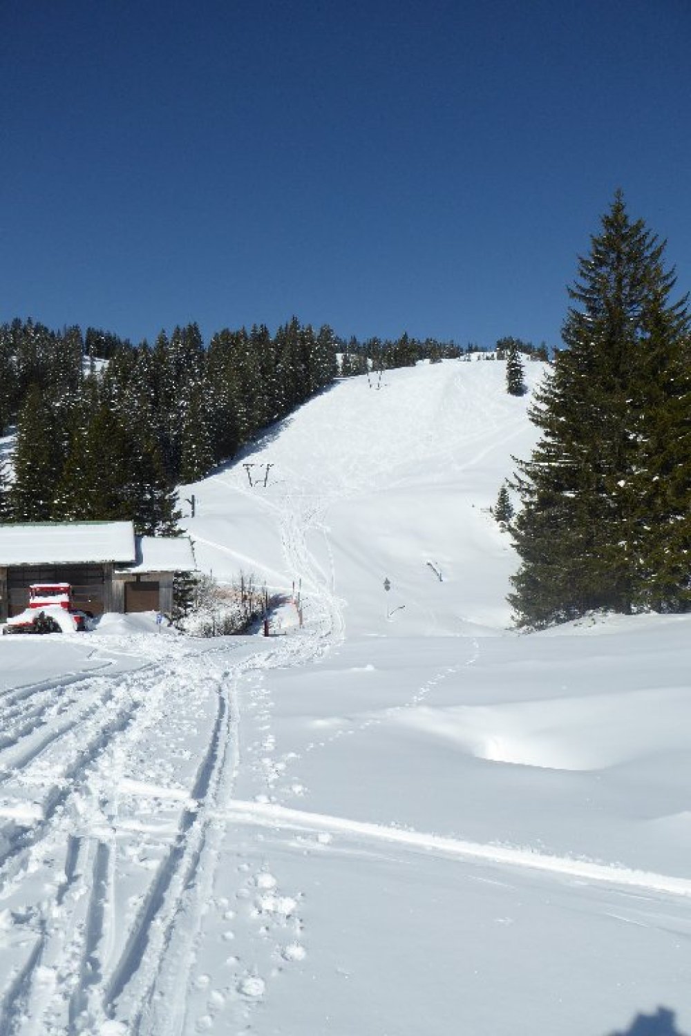 Natürlich gibt es im Allgäu lohnendere Frühjahrsziele aber dazu muß man die Ski zu Fuß oder mit Bike entsprechend lang transportieren. Beim Riedi kann man ausschlafen und ohne Streß vom Auto weg starten und wer 3x hochläuft kommt auch auf 1000Hm, bei verschiedensten Abfahrtsvarianten.