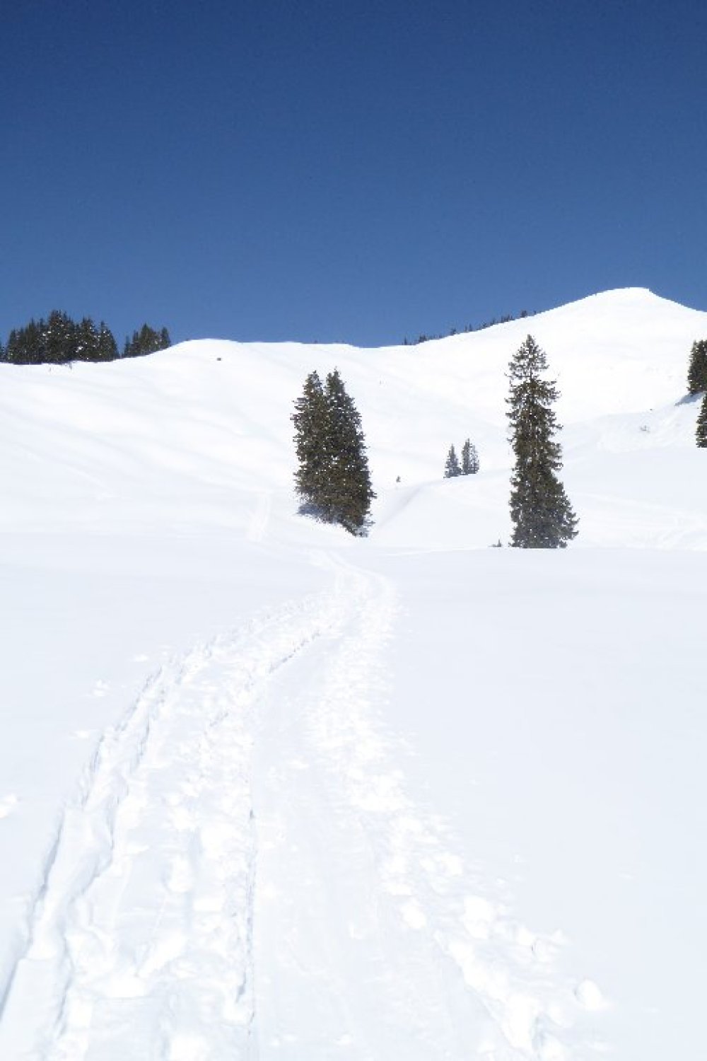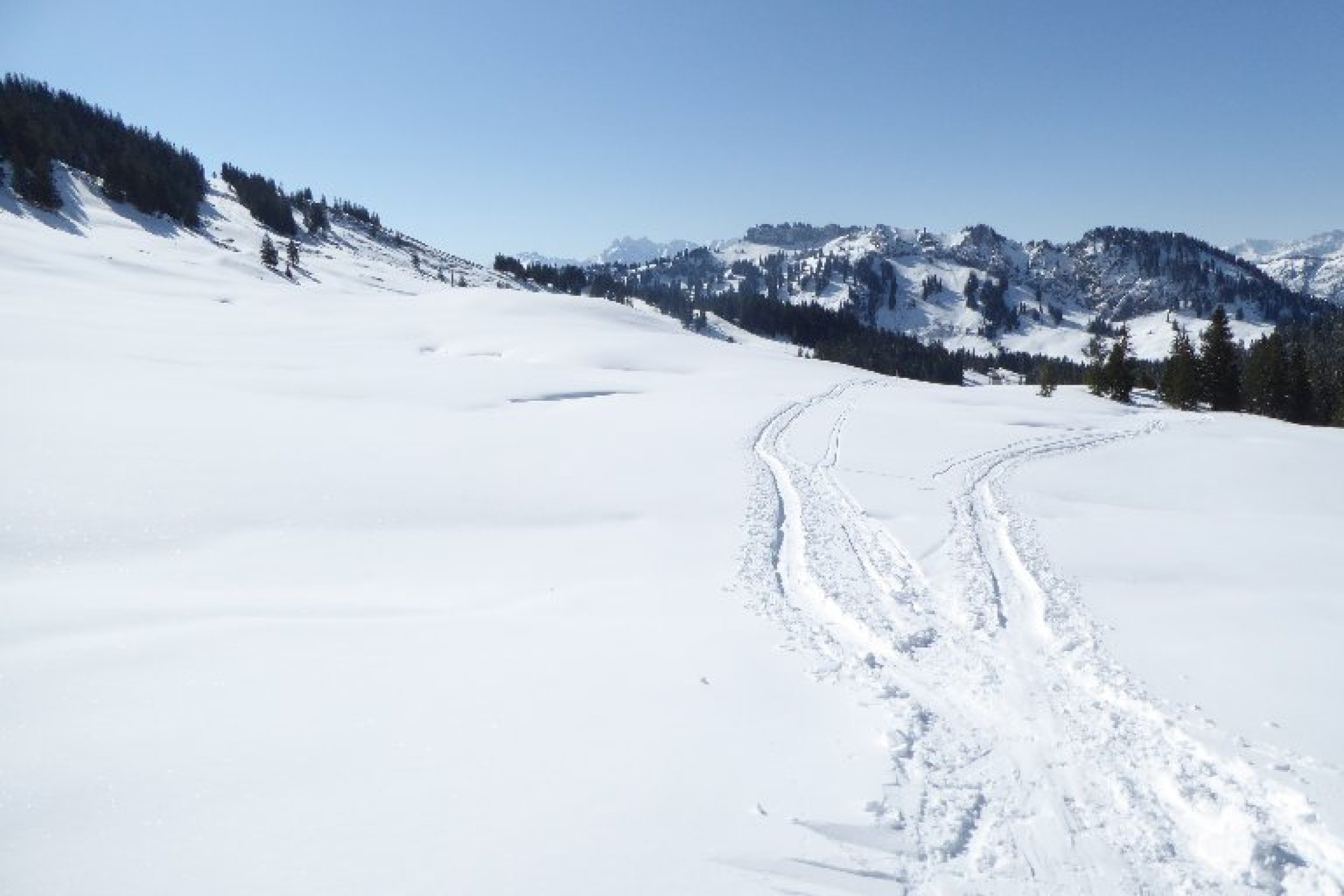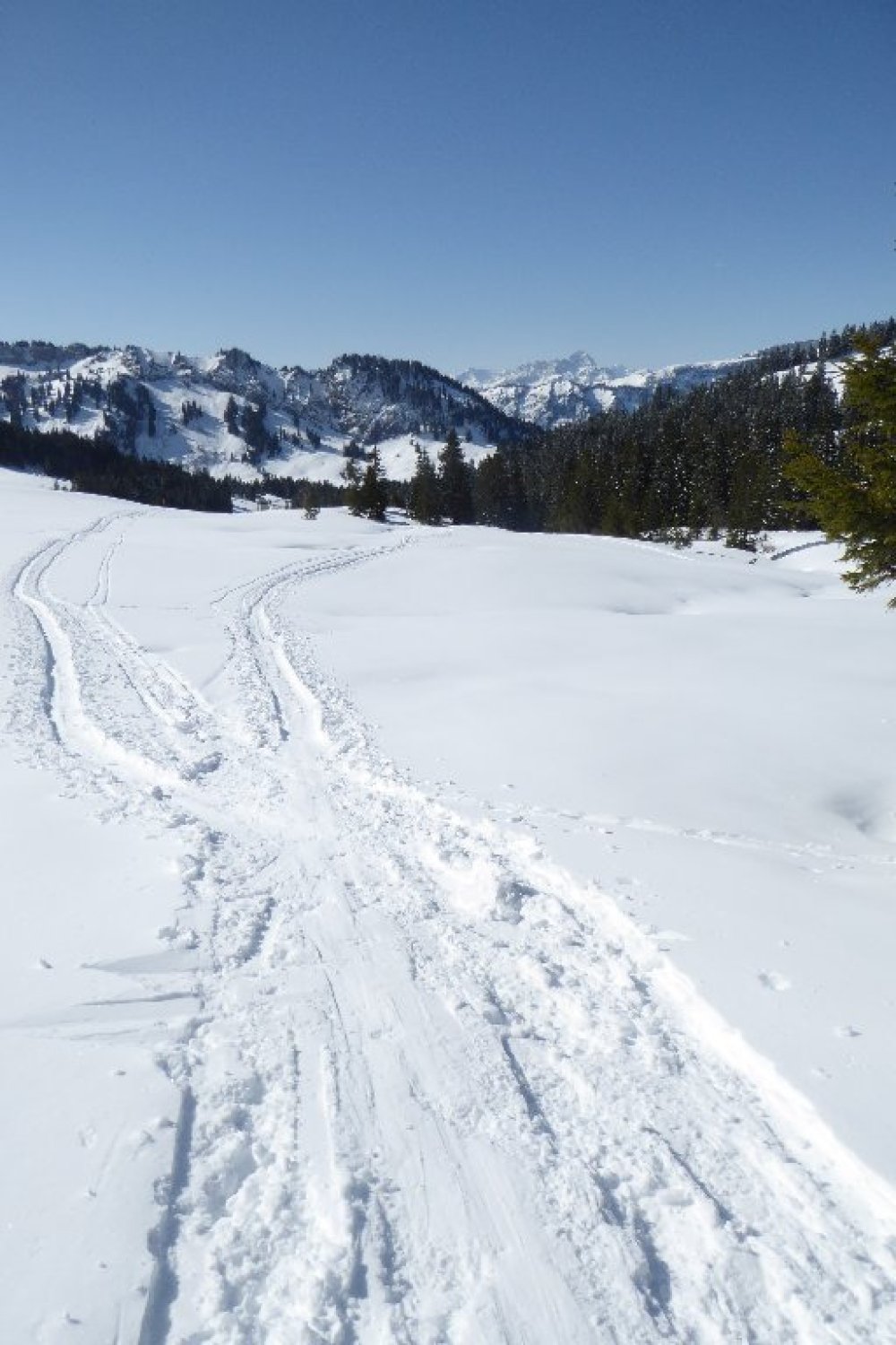 Natürlich gibt es im Allgäu lohnendere Frühjahrsziele aber dazu muß man die Ski zu Fuß oder mit Bike entsprechend lang transportieren. Beim Riedi kann man ausschlafen und ohne Streß vom Auto weg starten und wer 3x hochläuft kommt auch auf 1000Hm, bei verschiedensten Abfahrtsvarianten.
