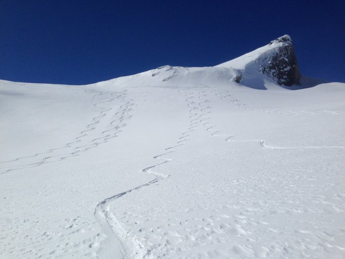 Aufstieg problemlos ohne Harscheisen, gute Spur vorhanden obschon nach dem Neuschnee erstaunlich wenige Leute am Berg waren. Heute waren etwa 20 Personen unterwegs.