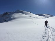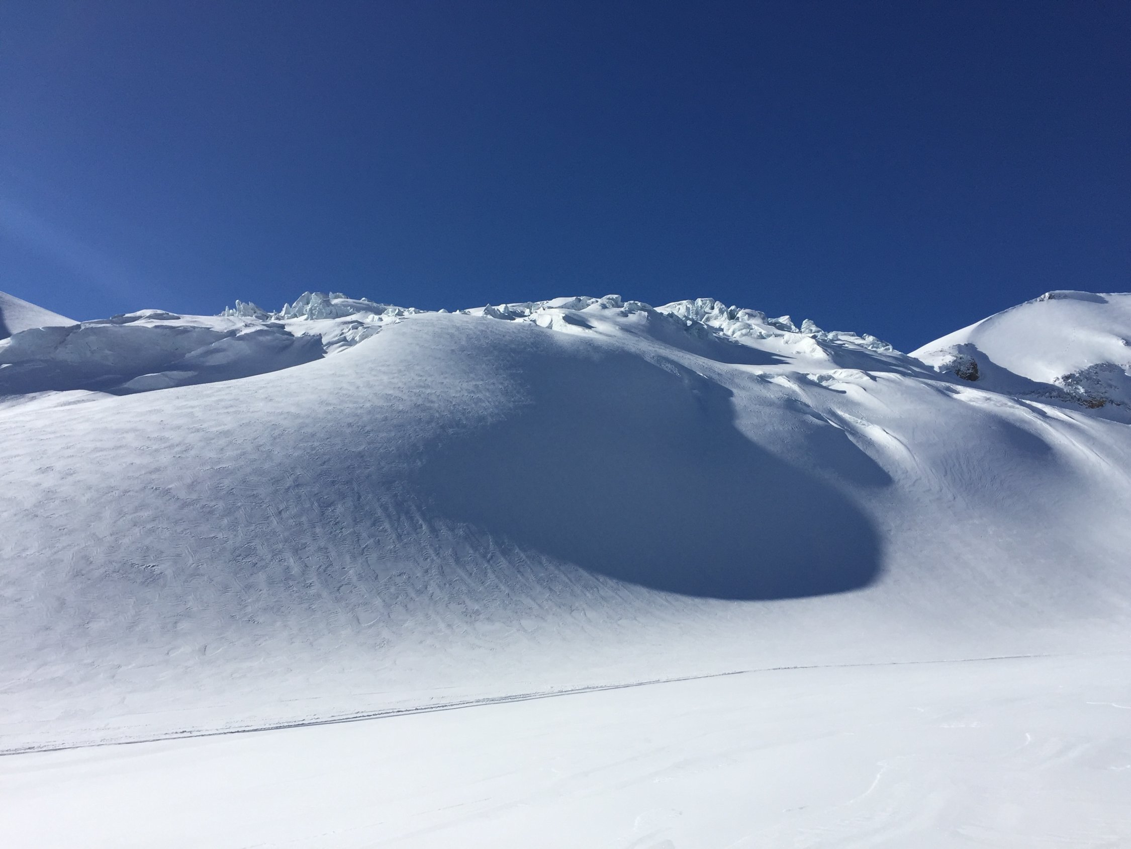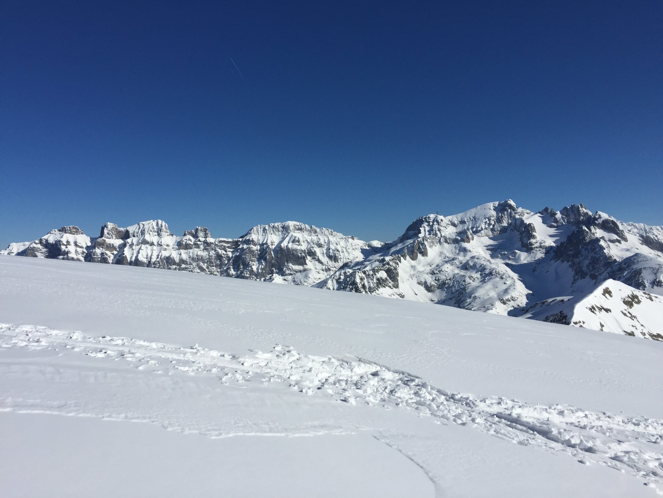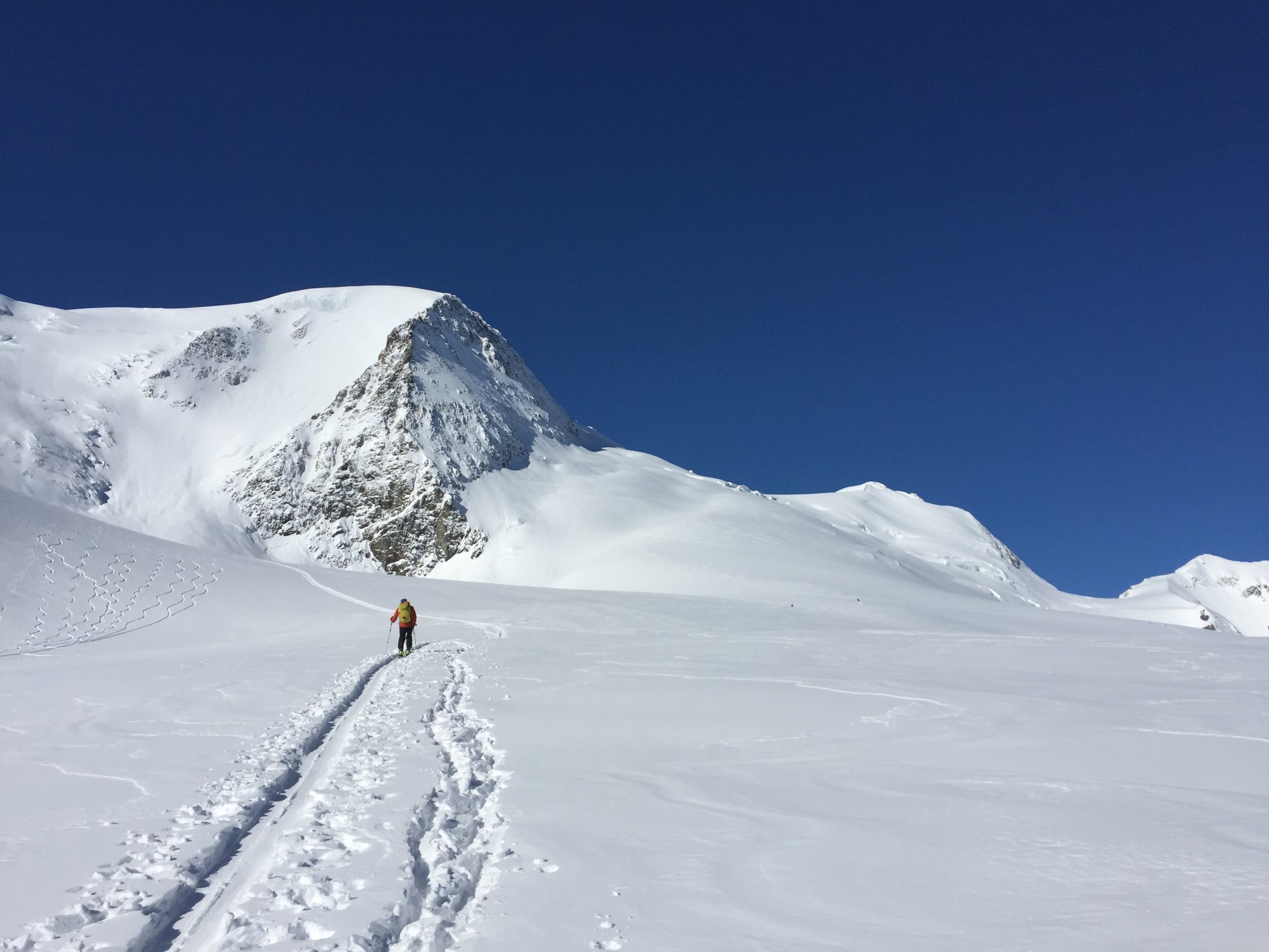 Sehr gute Verhältnisse. Genug Schnee ab Steingletscher, liegt gut ein Meter auf der Strasse. Ganzer Aufstieg genug Schnee, Spalten sichtbar oder gut gedeckt, ausgezeichnete Spur bis auf den Gipfel. Harsteisen nicht benötigt. In der Abfahrt bis zur ersten Stufe noch Pulver gefunden, dann leichter Deckel, nach dem Gletscher schöner und tragender Sulz.