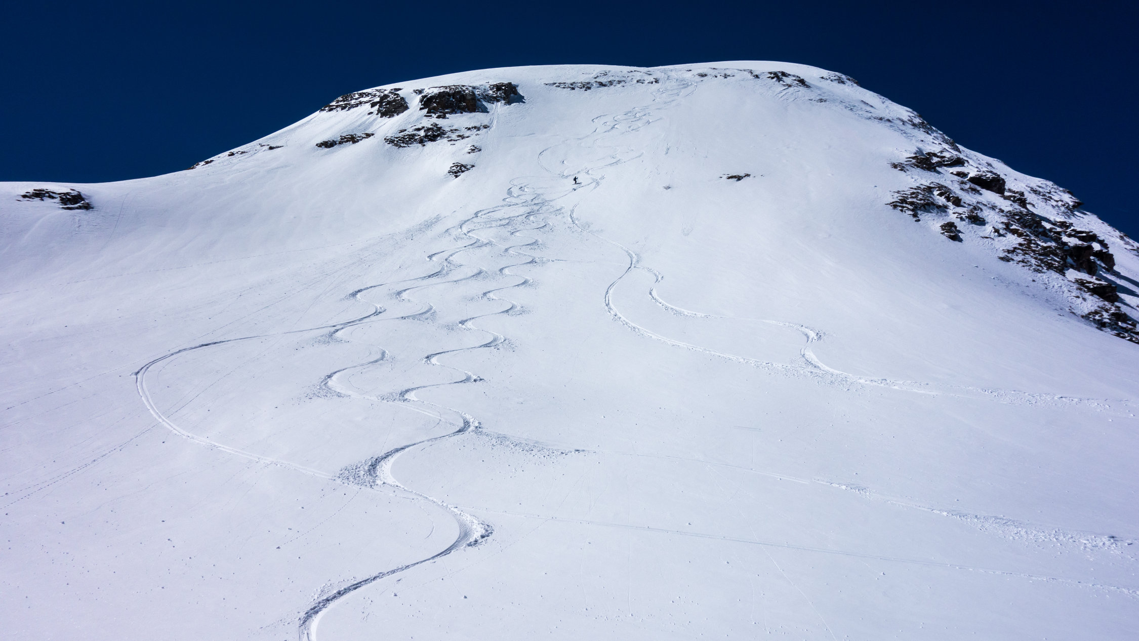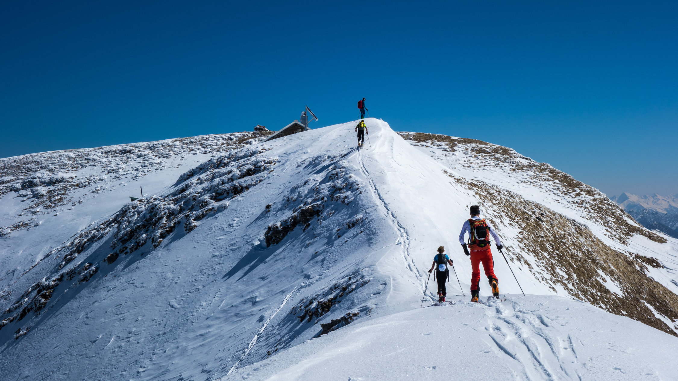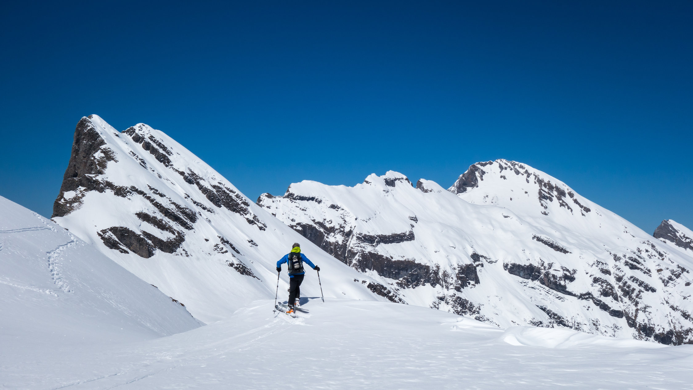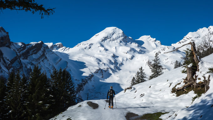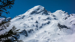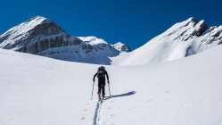 Ab Wasserreservoir durchgehende Schneedecke, keine Steine. Heute gute, einfache Aufstiegsspur. Die Schlüsselstelle im oberen Teil beim Felscouloir war heute bei gutem Trittschnee zu Fuss einfach zu bewältigen.