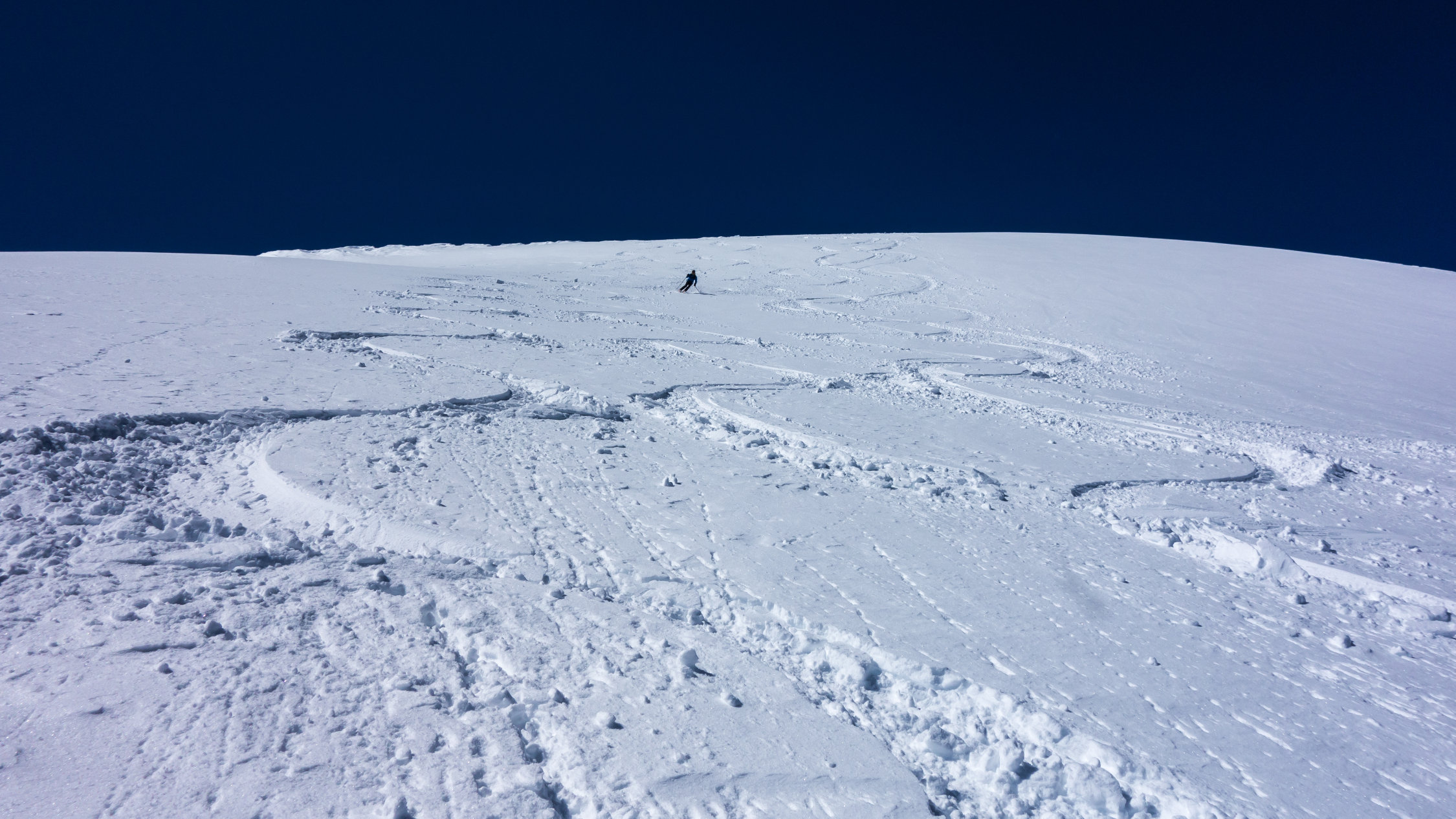 an sehr steilen Nordhängen hat sich der Neuschnee noch nicht mit der Altschneedecke gebunden. Wir haben im unteren Teil ein kleines Schneebrett ausgelöst.