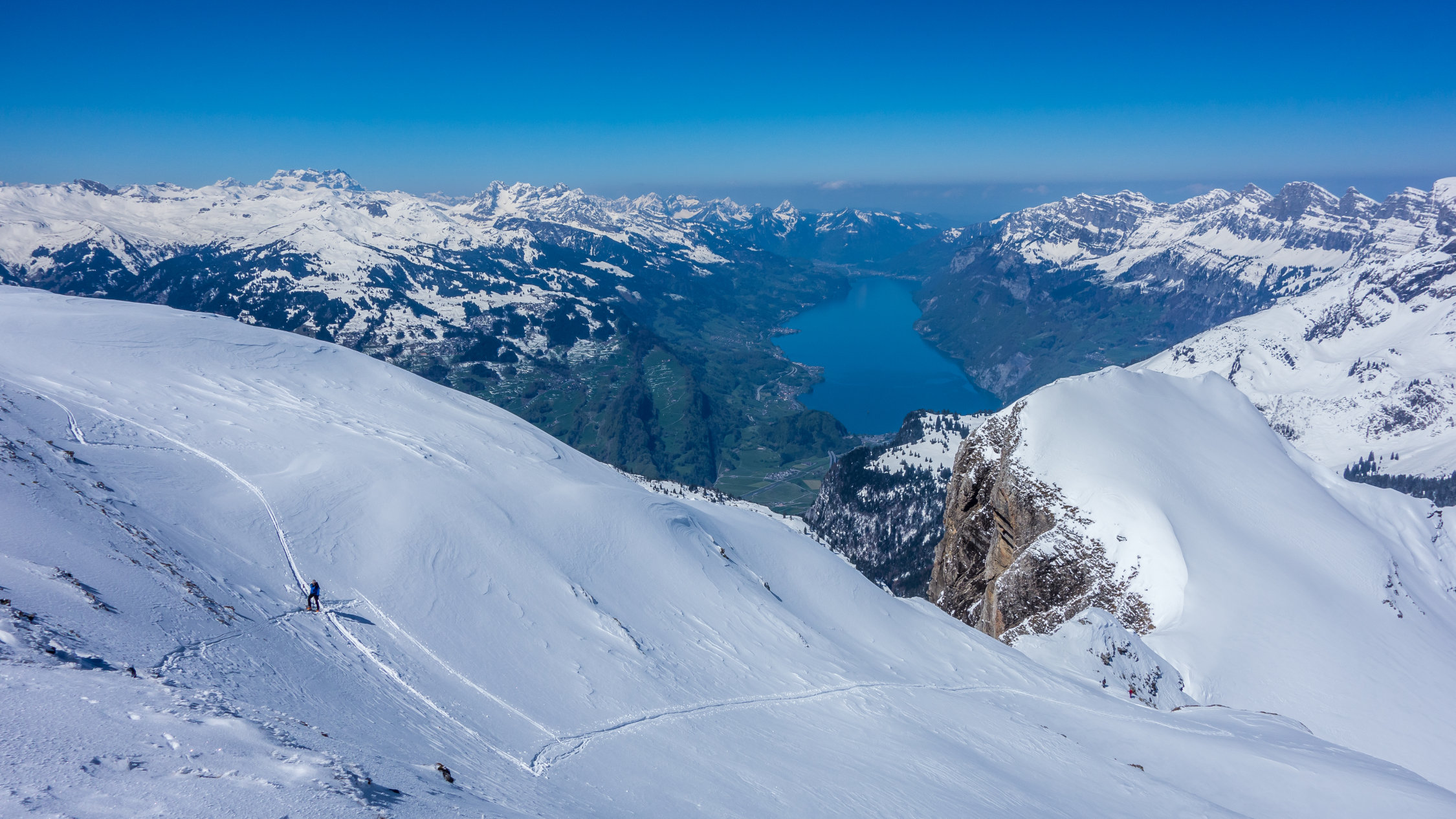 Wir haben für die Abfahrt die sehr steile Nordostwand gewählt; 40 cm herrlicher Pulverschnee bis hinunter nach Malschüel!