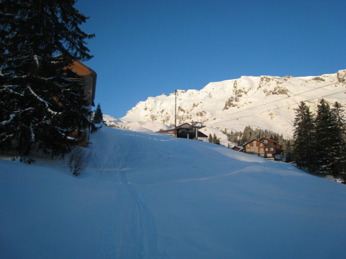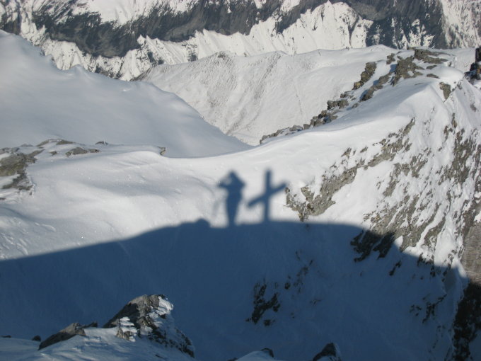 Danke dem Spurer! Mit vier Spitzkehren auf der gesamten Tour (!)...ideal - siehe Fotos...es gab' noch eine "andere" Spur von vorgestern/gestern, welche aber anscheinend nur bis Wildseeluggen ging. Leider hat der Spurer den Gipfel ausgelassen, was dann doch noch Stapferei bedeutete...