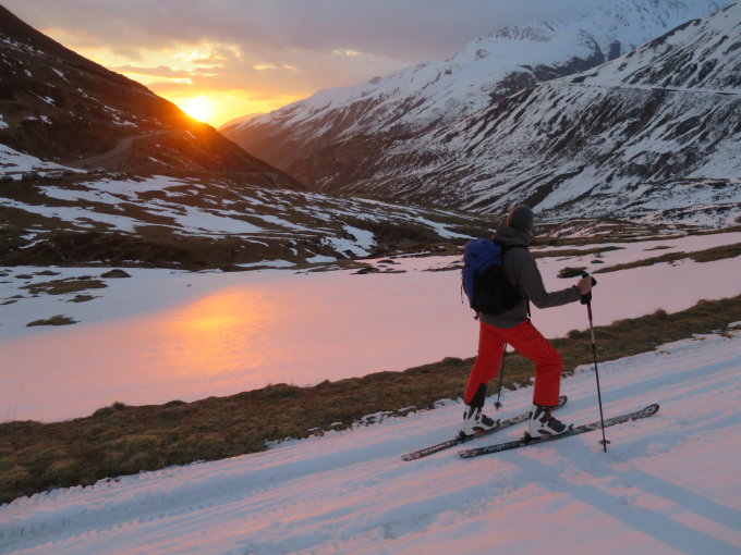 Oberalp pass offen, Hotel Piz Calmot auch. Im Aufstieg, oberhalb von Milez haben wir Birkhähne bei ihrem Balzritual beobachtet, unvergesslich!