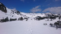 Schneeschuhe hatten wir zur Reserve eingepackt - aber nicht gebraucht. Ab 1600m recht viel Schnee - wenn keine Schneeschuh-Spur vorhanden gewesen wäre, hätte man die Schneeschuhe gebraucht.