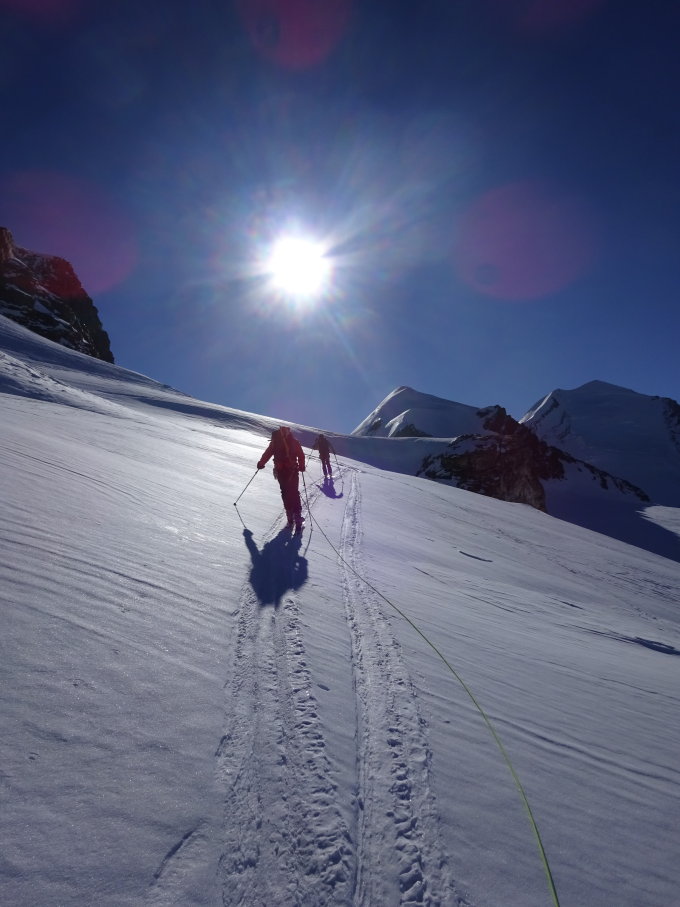 Wir waren vom 26.-29.04 im Gebiet und haben auch noch den Castor und den Pollux bestiegen. Am 29.04. sind wir via Gornerschlucht nach Zermatt...die Gornerschlucht kann nicht mehr befahren werden! Die Schlucht muss in Abstiegsrichtung rechts über die Felsen umgangen werden. Steinmänner und Pfadspuren zeigen den Weg.