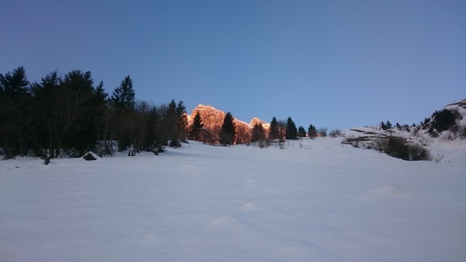 Super Morgen ,nach den Schneefällen letzte Tage, konnten wir den Schi schon im Grund losgehen.Es hatte unten auf gut 1000m nochca.20cm gefrorenen Schnee.