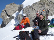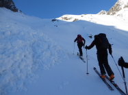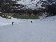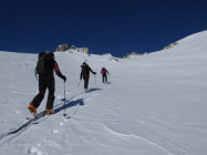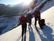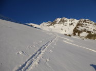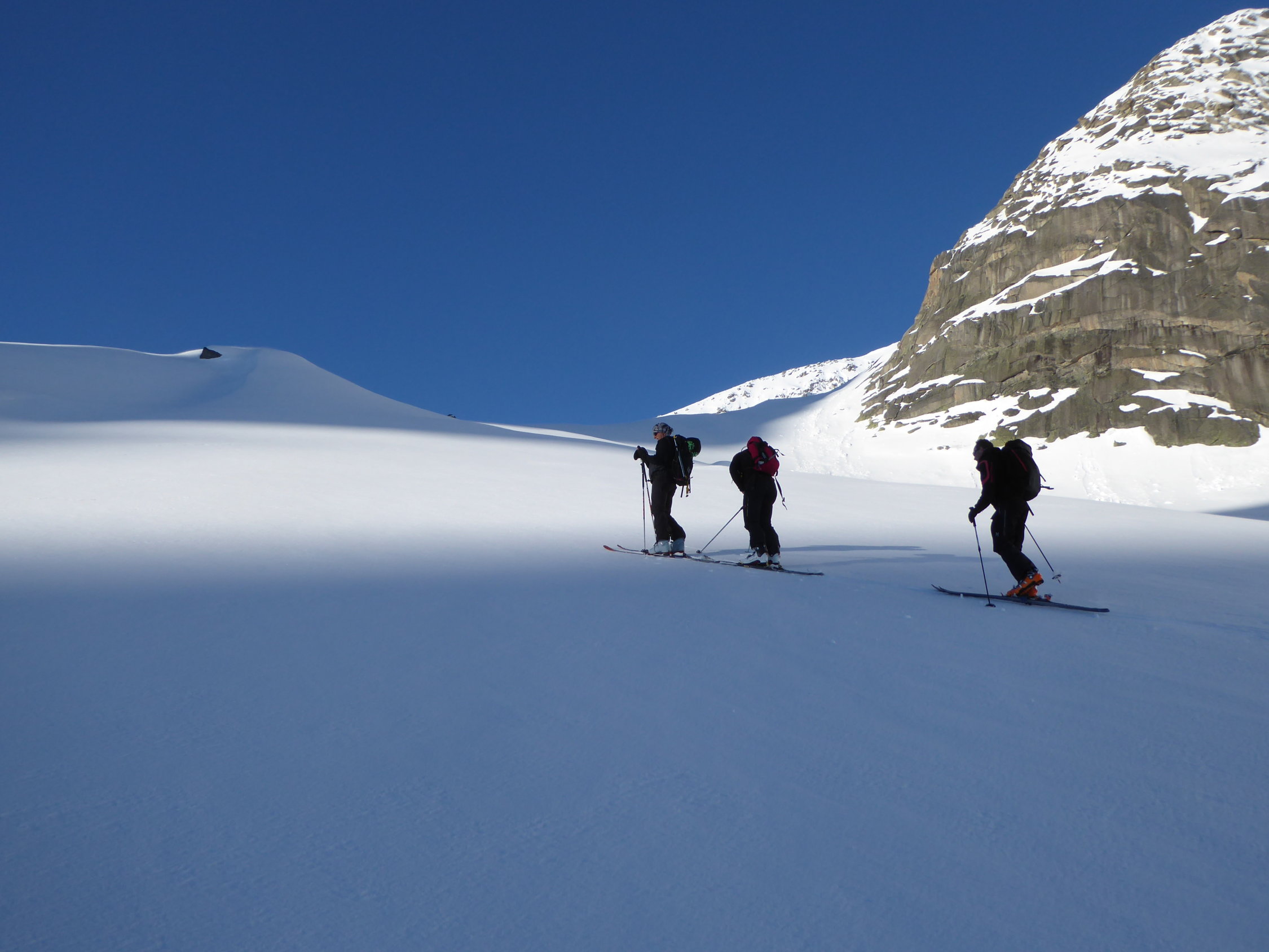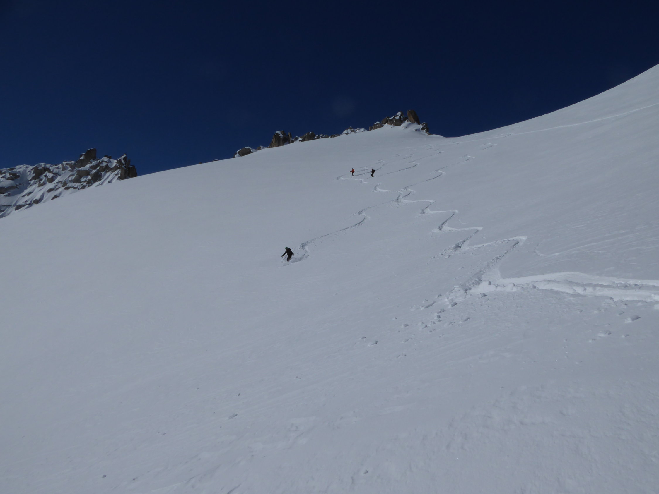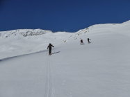 Herrliche Bedingungen zur Zeit am Lochberg mit genügend Schnee. Unten etwas hart Schnee bei der Querung oberhalb dem See doch ist ein Spur vorhanden. Ab der Höhe 2500 m hat es Neuschnee bis zu 20 cm so das wir die neue Spur anlegen durften. Wir konnten den Gipfel für uns alleine geniessen bei warmen Temperaturen und ohne Wind. Die Abfahrt war genial oben schönster Pulver wie in Hochwinter unten war glatter Hartschnee wie fast auf eine Skipiste. Es waren erstaunlich wenige Leute unterwegs die wir auf unserer Abfahrt entdecken etwa 10 Leute.