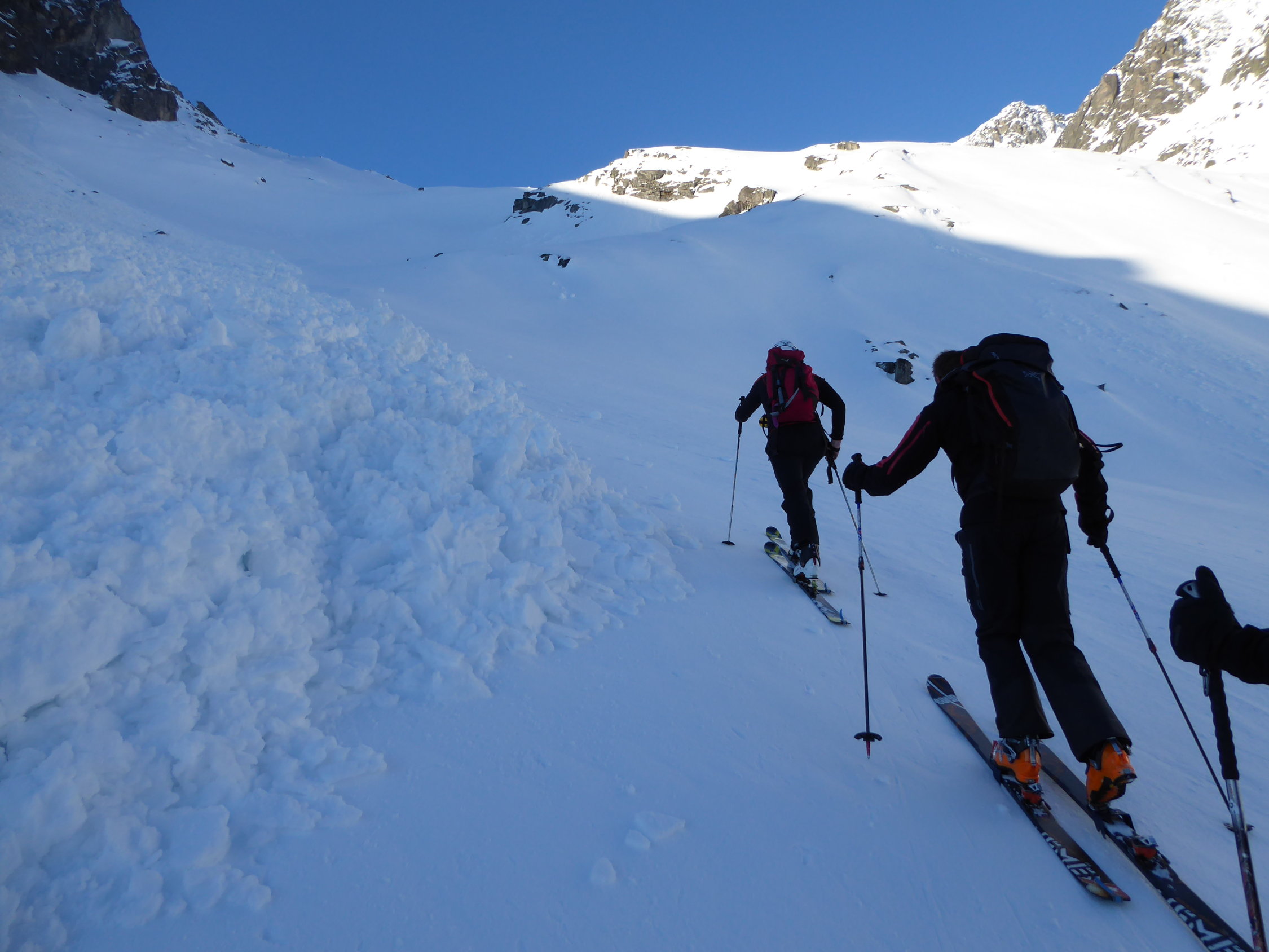 Es sind alte Lawinenkegel die vor 1 bis 2 Tagen niedergingen vorhanden. Kleine Neuschnee Lawinen gingen heute an der Winteregg runter.