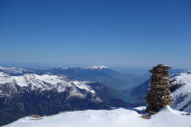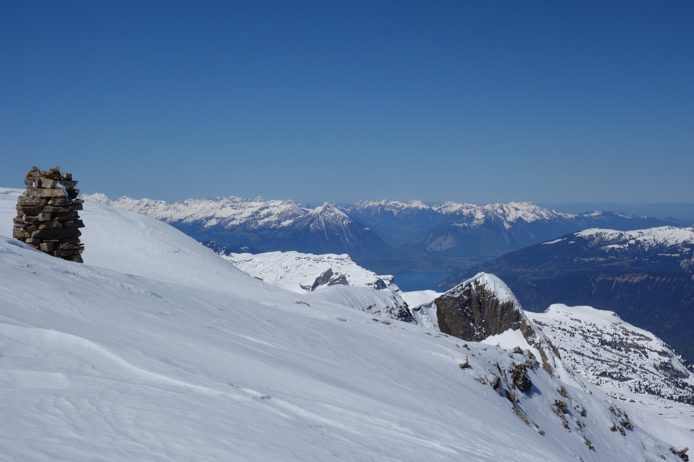 Im Aufstieg die Skis gute 20 Minuten getragen, dann durchgehende Scheedecke, sogar am Gipfelhang tragend, dass kaum Gefahr für Steinkontakt. Waren heute die Einzigen auf dem Gipfel. Abfahrt durchs Wischbääch mit schönem Sulz, 2 kurze Tragestrecken auf Schwandboden und danach.