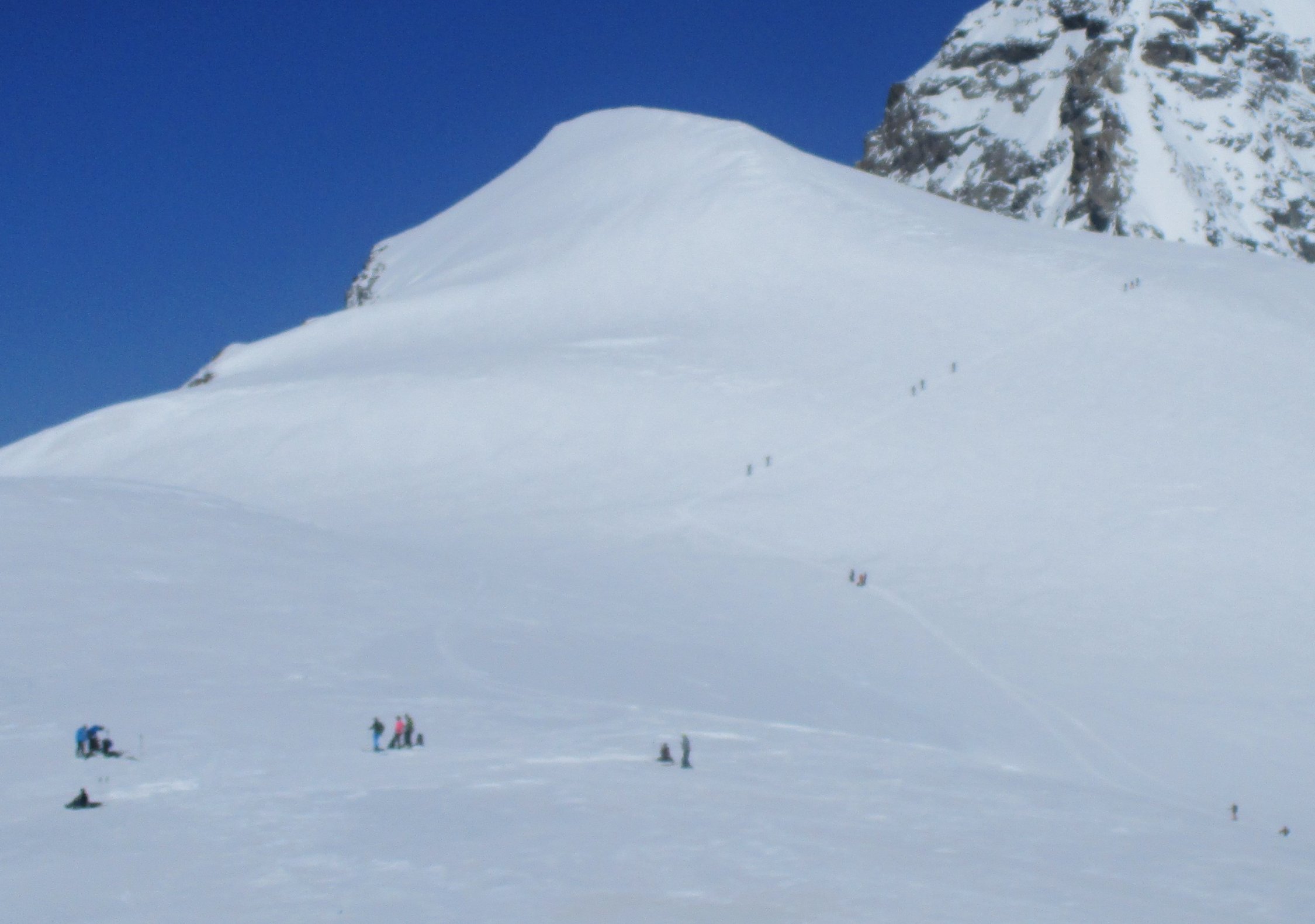 Abfahrt vom Jungfraujoch Traumhafter Pulverschnee, schon etwas schwiriger vom Louwihorn, aber ganz Akzeptabel.Fast kein Wind, und viel weniger Kalt als vorausgesagt. Der erste Steilhang von der Lötschenlücke 3173 so die ersten ca. 300 hm wahr ein Acker und sehr Windig, weiter unten auf dem Langengletscher wunderbarer Sulzschnee, ein Traum!