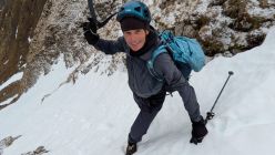 Alpine Wanderausrüstung. Mit Pickel und Steigeisen.