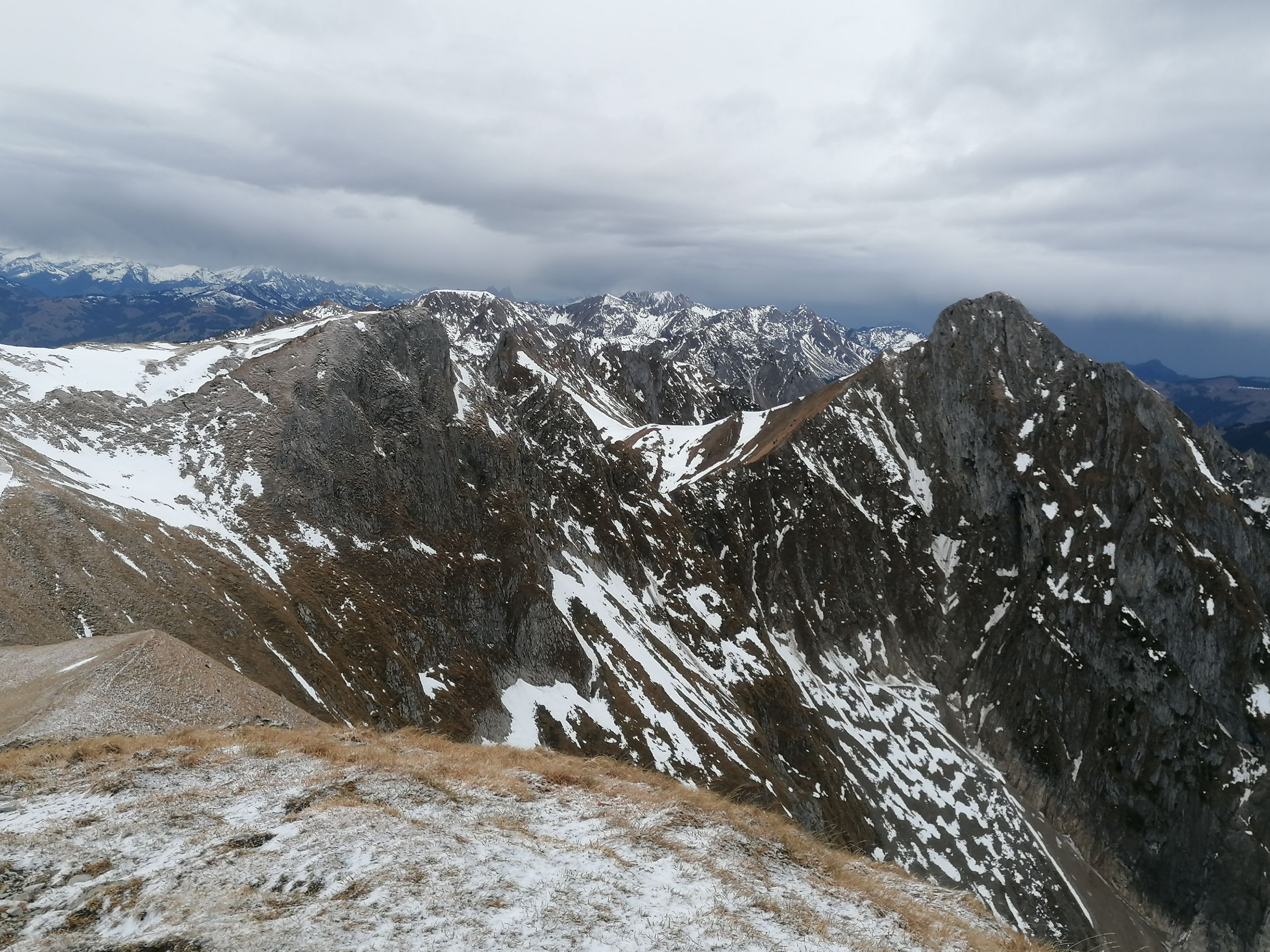 Auf dem Gipfel haben wir vom Westen her eine schwarze Front kommen sehen.