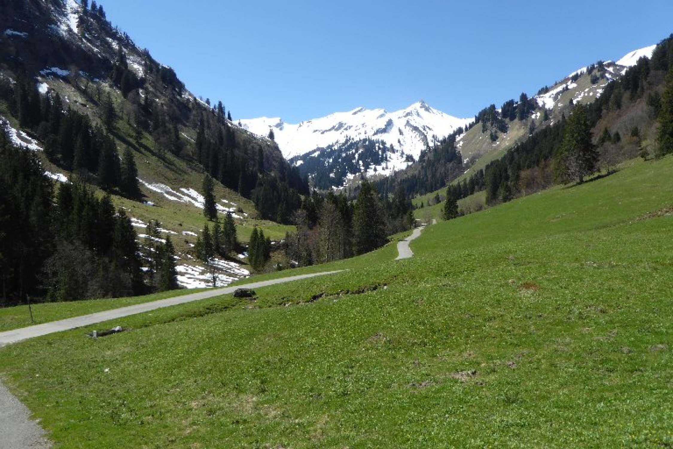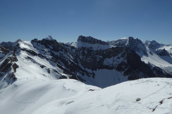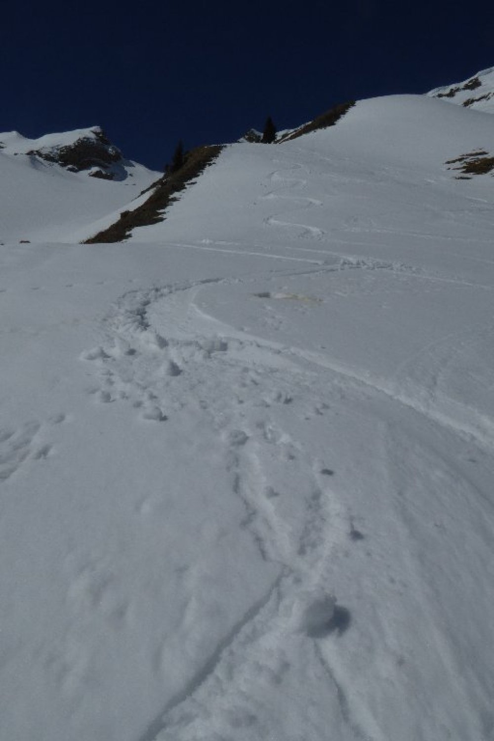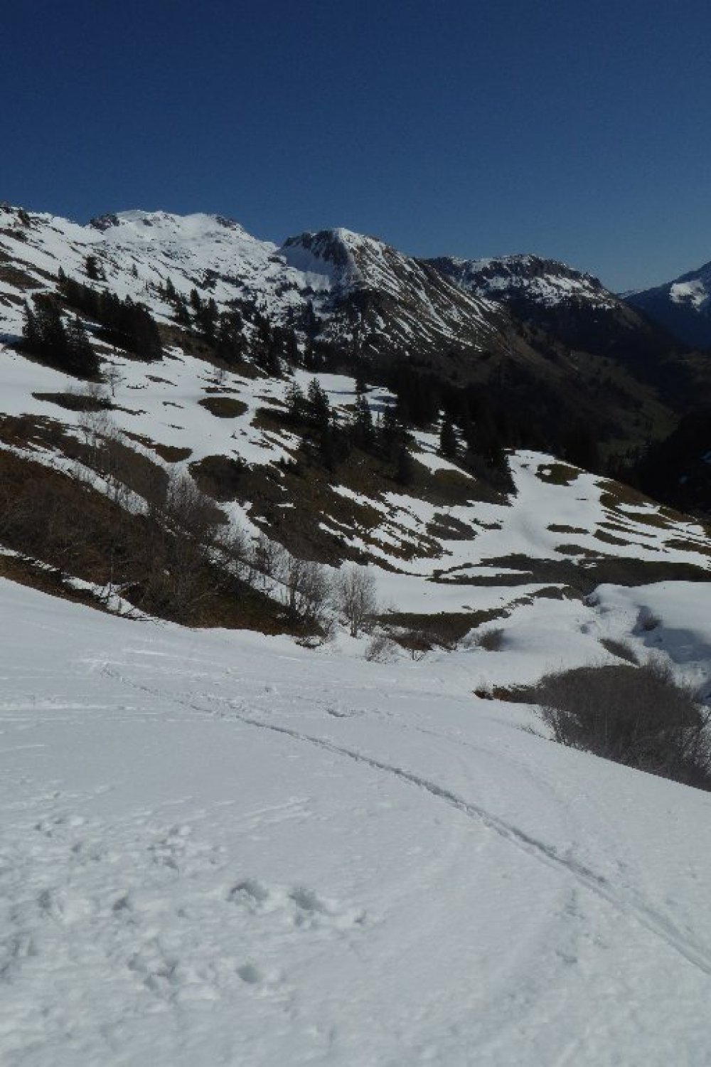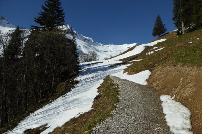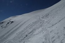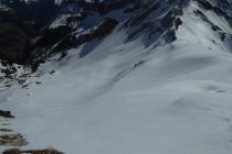Strasse Schneefrei bis Abzweig kurz vor Wengealp 1280m (Bikedepot). Dann am besten Ski ca. 20 Min. tragen bis zur Schneegrenze (mehrere Unterbrechungen). Ab 1400m geschlossene Schneeschicht. Je früher umso besser hält der Deckel noch. Der flotte Gipfelhang ist teilweise oberflächig abgeräumt aber hier sollte man sich nicht mehr in der Mittaghitze aufhalten. Bin ca.10:30h abgefahren sollte nicht viel später sein, sonst säuft man unten ab. Es hat noch mächtig Schnee oben und die Wechten am Kleinen Seekopf sind auch nicht zu verachten. Bedingungen besser wie vermutet.
