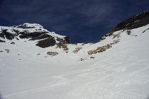 Nassschneelawine aus den felsdurchsetzten Osthängen Uf Mitten gegen das Wischbääch um 11.30 Uhr abgegangen.