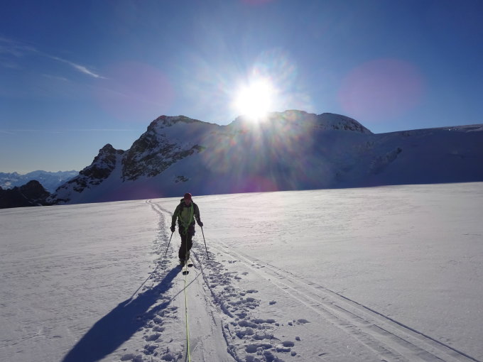 Allgemein sehr gute Bedingungen...der Gletscher ist sehr gut eingeschneit...den Weg durch den Gletscher wählt man momentan idealerweise lange westlich am Tossensattel vorbei und dann erst auf dem Plateau (ca. 2950m) hinüber Richtung Wellhornsattel. Mit einem Seil ist man aber sicher nicht "overdresset"....
