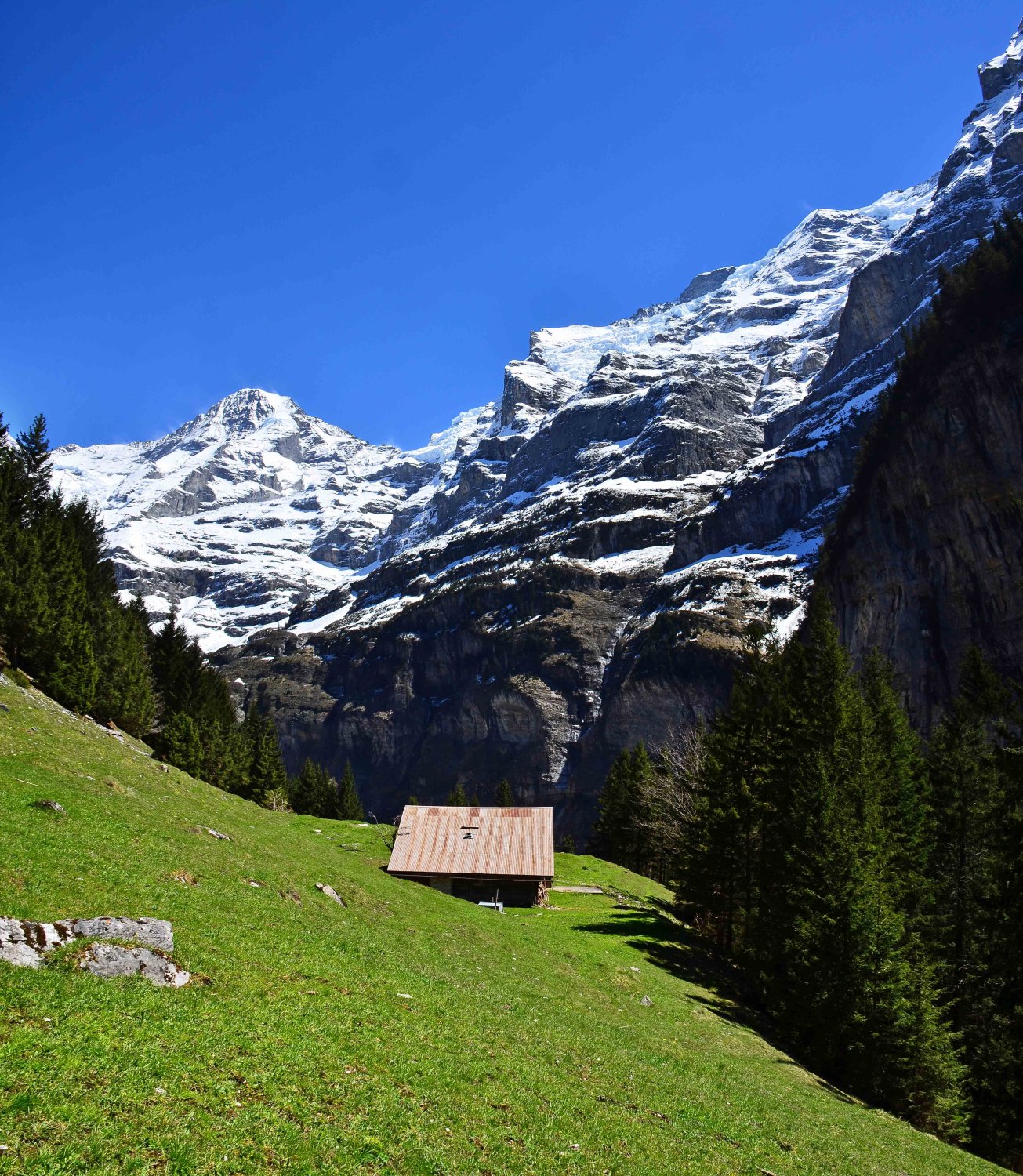 Nur ganz oben noch Schnee. Sonnst erstaunlich gut und relativ trocken. Auf der Wengernalp und auch an der andere Seite der Kleinen Scheidegg liegt noch mehr als genügend Schnee!