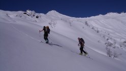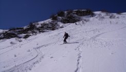Beste Verhältnisse. Wir konnten mit dem Auto bis zum Tunnel fahren. Dann zirka 1 km Tragstrecke und auf die Felle. Tragende und griffige Schneedecke im Aufstieg. In der Abfahrt im Gipfelhang leicht gepresster Pulverschnee und dann griffiger Sulzschnee bis Obersiezsäss.