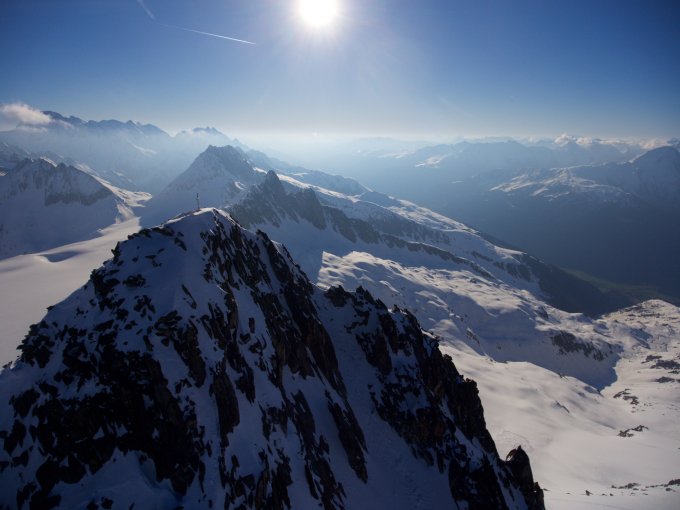 Die Überschreitung (Gratkletterei) des Pez Ault, anstelle der Leiter am Brunnifirn, ist gut machbar und für schwindelfreie eine gute Alternative. Nordeitig muss man ein kurzes Stück absteigen und dann perfekte Abfahrt bis auf den Brunnifirn.