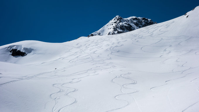Abfahrt vom Gipfel um 11 Uhr war perfekt. Auf dem Gletscher noch etwas Pulver, dann absolut traumhafte Sulzschneehänge bis zum Parkplatz in Dürrboden. Besser kann es nicht mehr werden......man möchte stundenlang so über die Hänge weiterschweben.