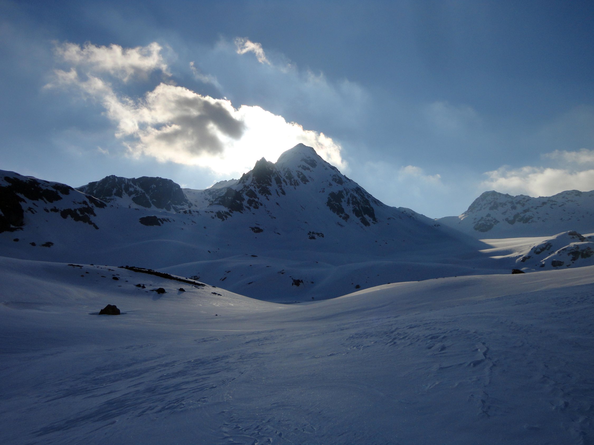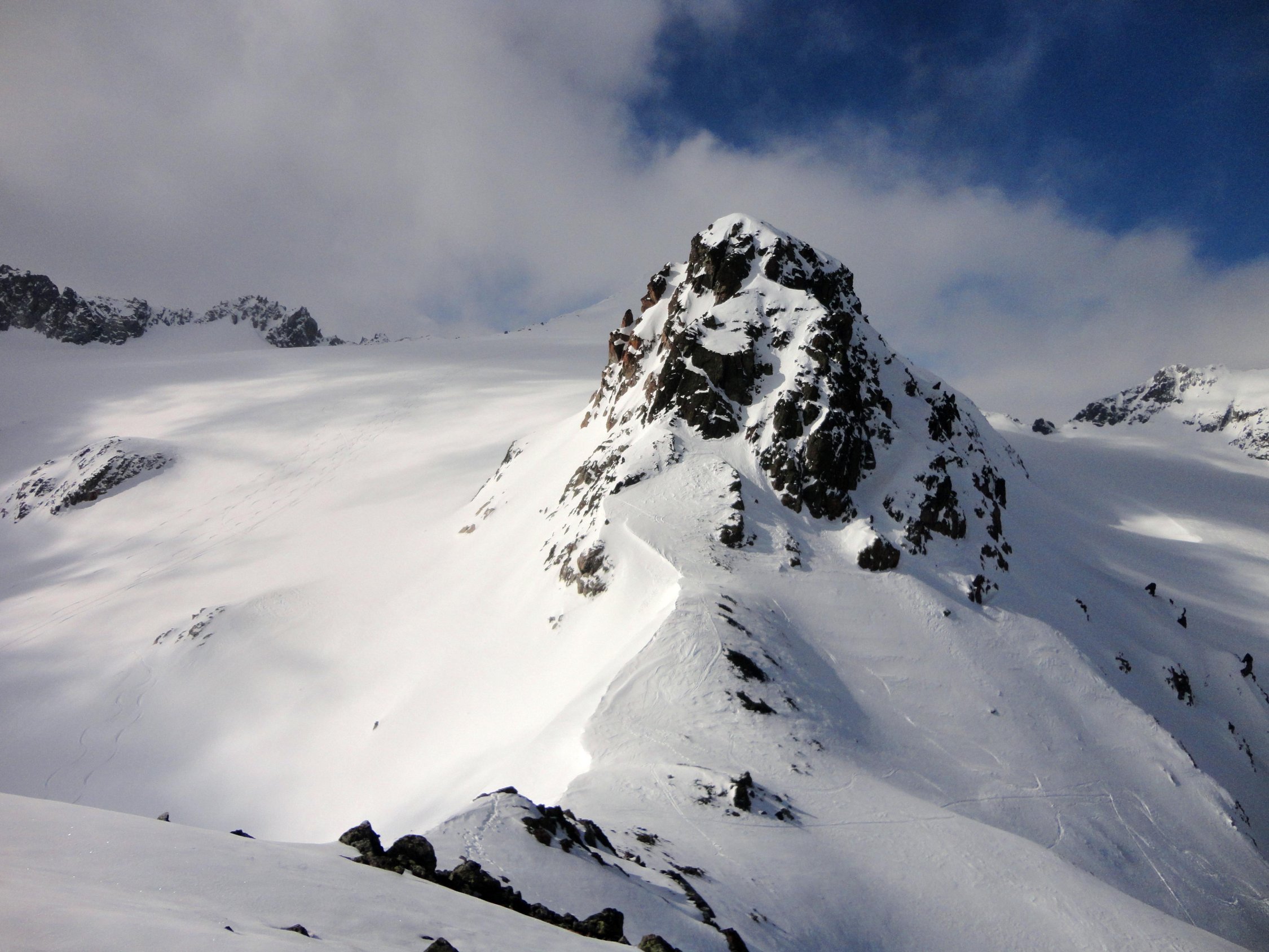 Aufstieg zum Sarsura Pitschen: oberhalb der Fuorcla Sarsura kurz zu Fuß über einige Felsen, dann hart, aber dank guter Spur mit Ski bis zum Gipfel. Abfahrt Ostflanke gegen 10.30 h ideal, ganz oben noch etwas fester, weiter unten schön aufgefirnt. Direkter Übergang über die Fuorcla Sarsura auf den Vadret da Sarsura sieht aufgrund Gletscherrückgang und Wächte nicht ganz trivial aus, wäre aber machbar.