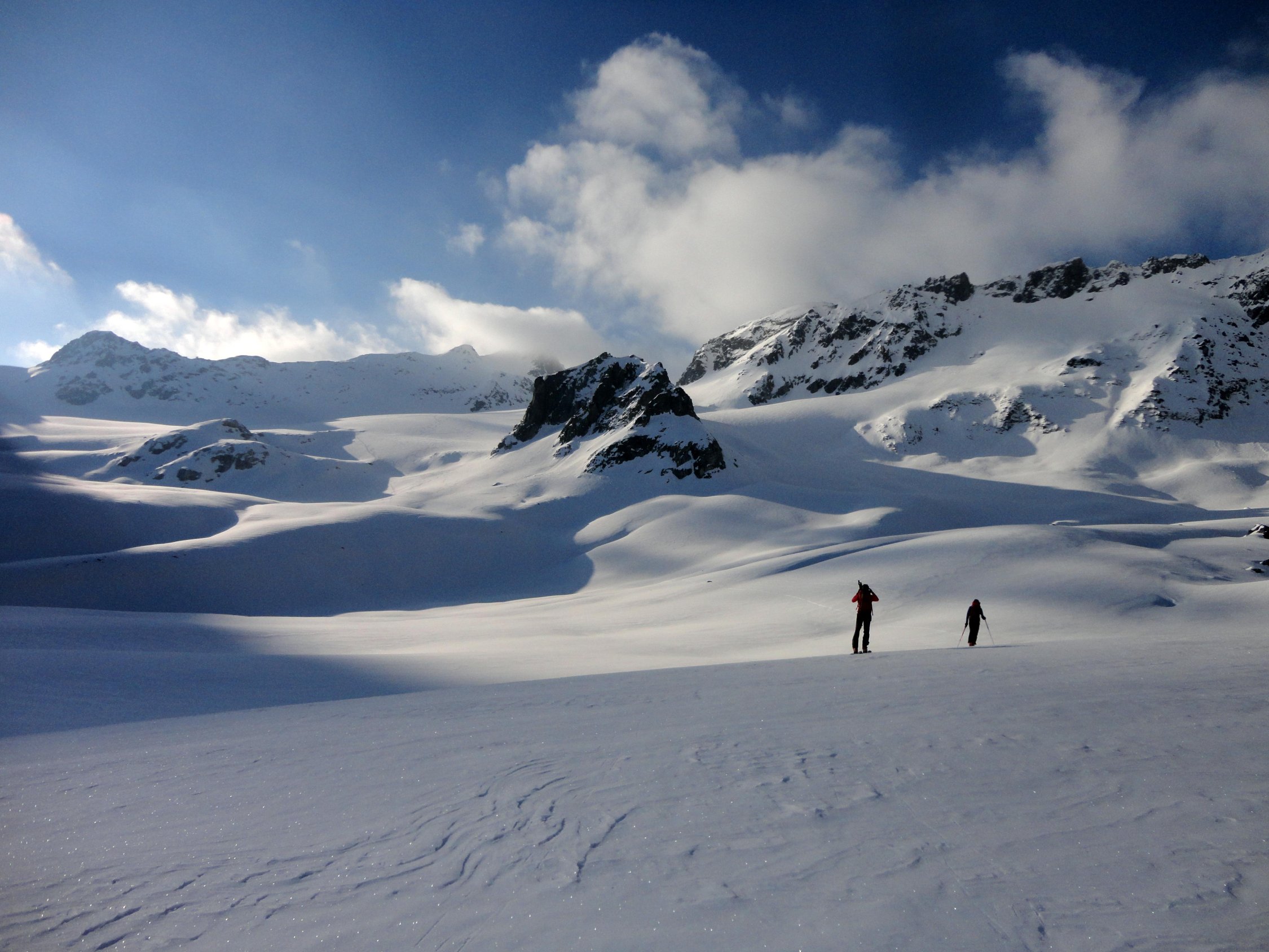 Hüttenzustieg vom Dischmatal: die nächsten Tage noch durchgehend Schnee ab Dürrboden, wird aber im Talgrund wohl langsam ausapern. Oberhalb noch länger gut.