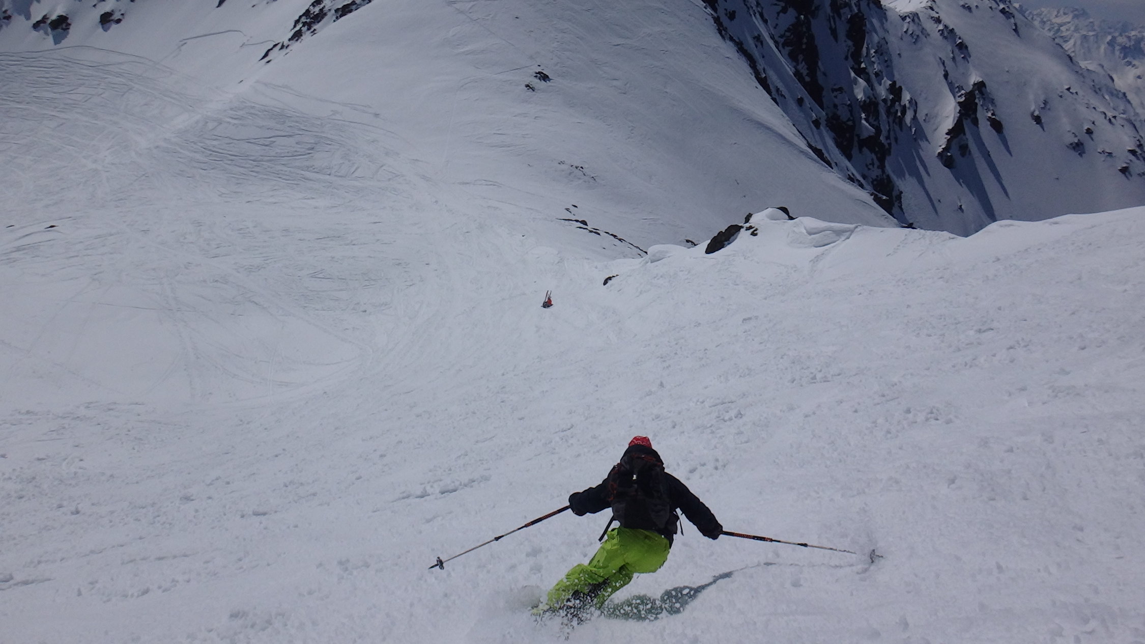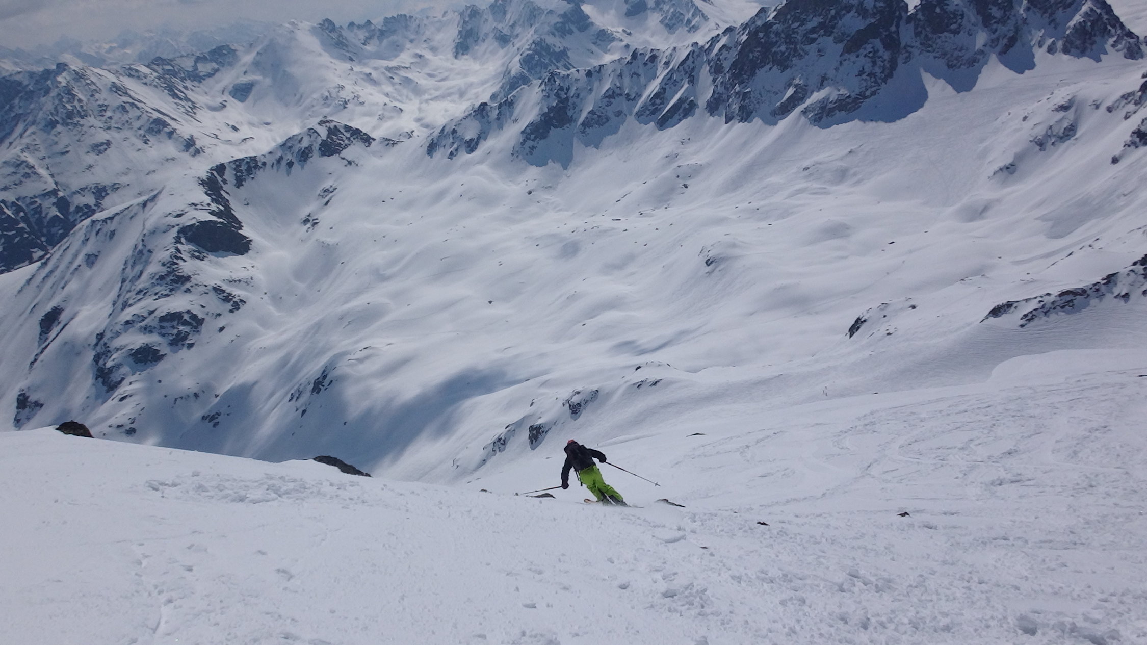Abstieg gut hart schnee bis 2900m.u.m. dann sulz aber gut ski bis Fluelapass