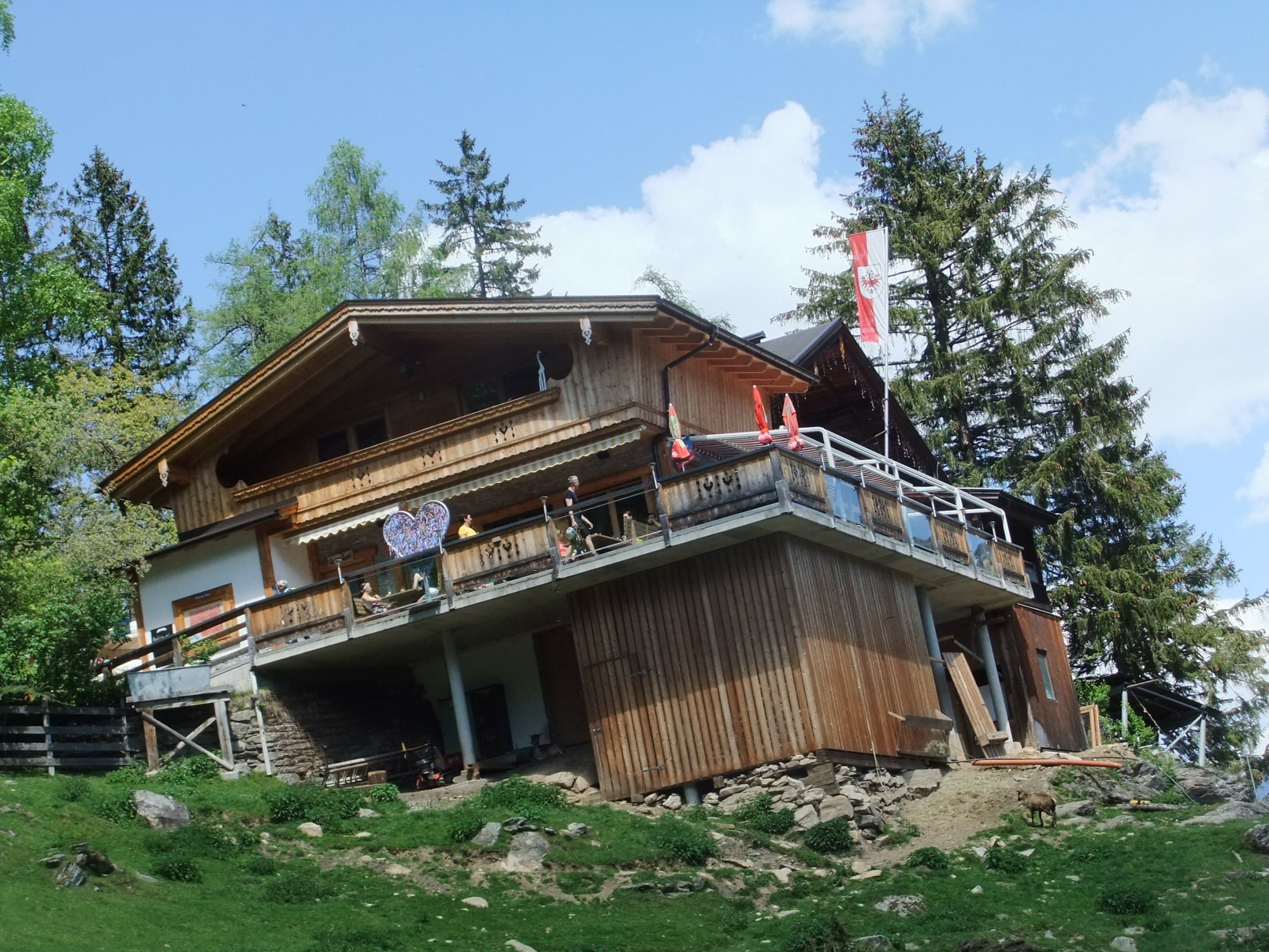 Gemütlicher Ausstiegsort mit Aussichtsterrasse über den Dächern von Mayrhofen mit Blick ins obere Zillertal.
