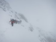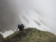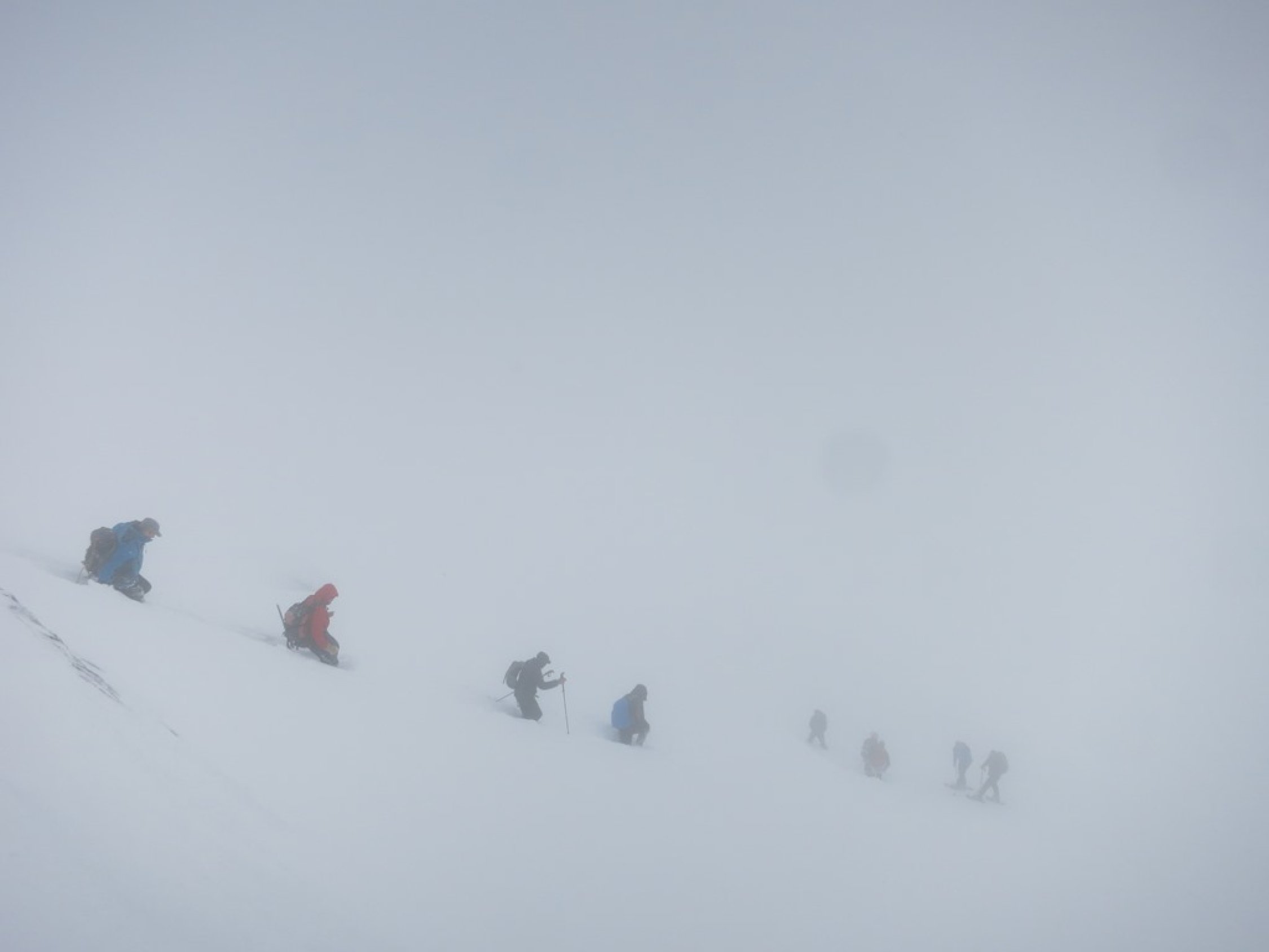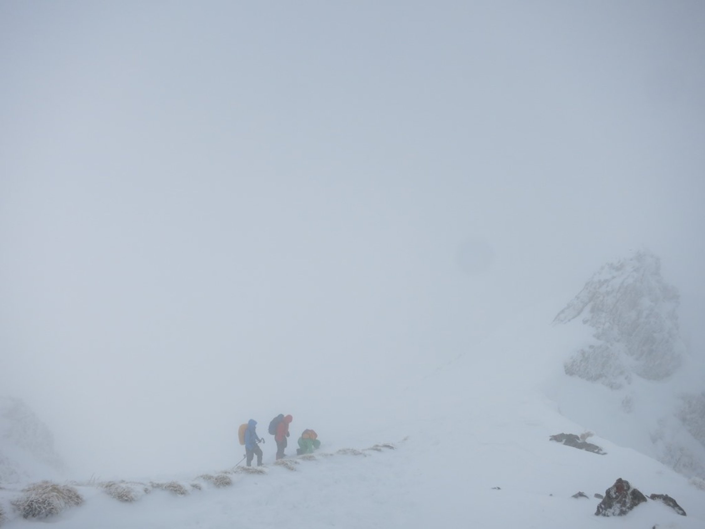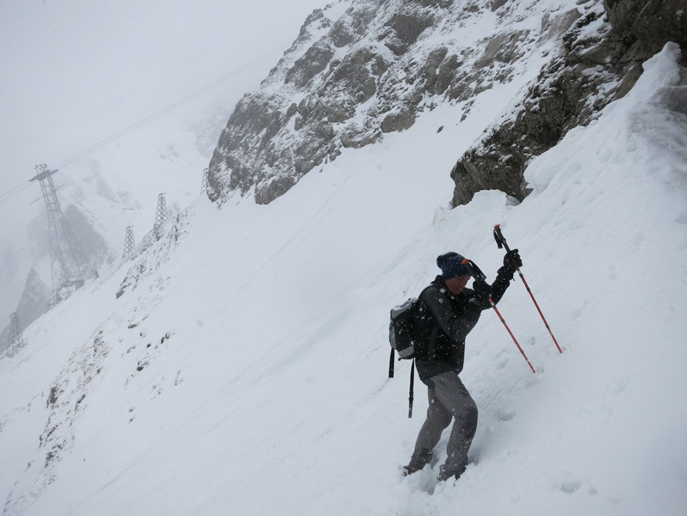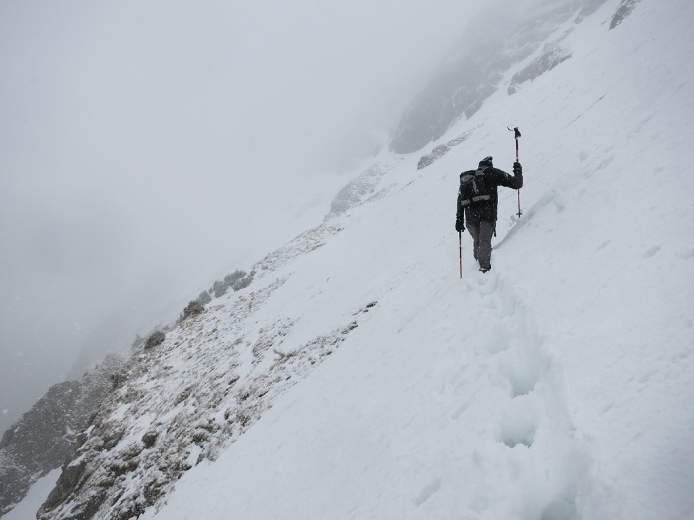Aufstieg Tierwis (gestern): Start kurz vor 15 Uhr nach einer kurzen Aufhellung. Bald einsetzender Regen, dann Graupelschauer und oberhalb ca. 1‘600 Meter Schneefall. Neuschnee ab etwa 1‘800 Meter auf Altschnee; je nach Windexposition zwischen 10 und 25 cm, (oder mehr). Altschnee darunter aufgeweicht… Querung Langwand teils heikel da ziemlich abschüssig. Aufstieg in der Rinne nach dem Ellbogen, (P.1939), streckenweise bis 40 cm im Schnee „gewühlt“. Stahlseil zur Tierwis liegt noch unter dem Schnee.