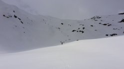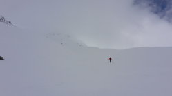 Start der Tour am 6.30 Uhr bei einer Temperatur von 0 Grad , leider war das Wetter nicht so wie von uns erhofft, die Schneedecke war gut durchgefrohren mit nur wenig Neuschnee, die Lawinenverhätnisse waren kein problem , bald tauchte man ihn den Nebel ein, bei 2650 m war es dann Schluss die Orientierung war zu schwierig, nach einer längeren Pause fuhren wir zur Passstrasse ab, aber schon bald wurde das Wetter besser und viele Tourengänger waren unterwegs, wir machten uns nochmals auf den Weg in Richtug Pizzo Tambo, diesmal auf einer andern Route auf einer sehr schönen Aufstiegsspur, bei 3000 m war dann wieder schlechte Sicht und keine Aufstiegsspur mehr, der Pizzo Tambo erhielt heute keinen Besuch von Bergsteigern /inen