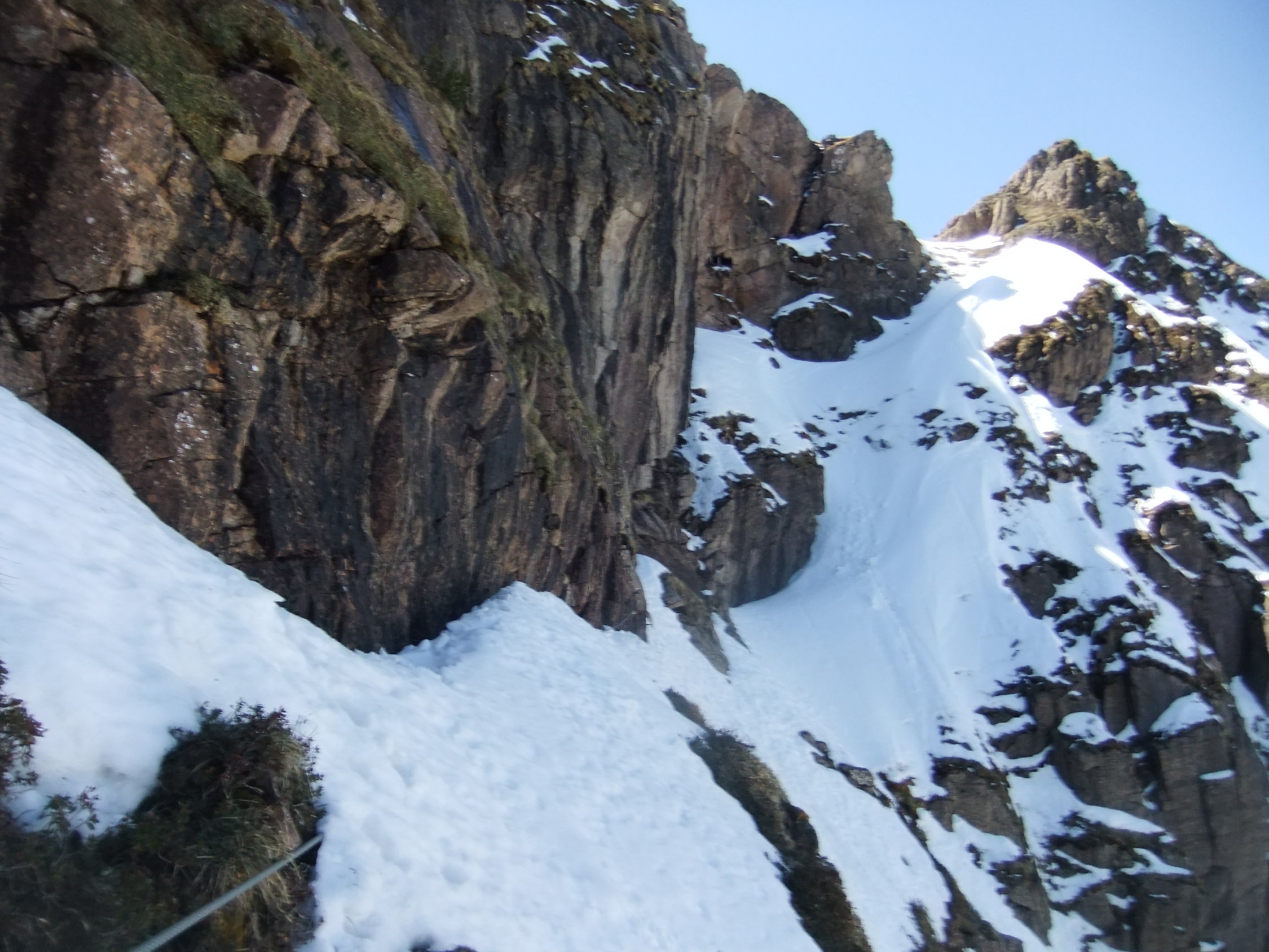 Tourenbeginn um 07:00 bei strahlendem Sonnenschein. Die Felsbänder sind noch eingeschneit, so daß das Seil noch nicht genutzt werden kann. Nur 3 Leute unterwegs gewesen, da die Bahnen nicht fuhren Webcam: http://www.allstarcard.at/de/webcams-fieberbrunn-tirol.html