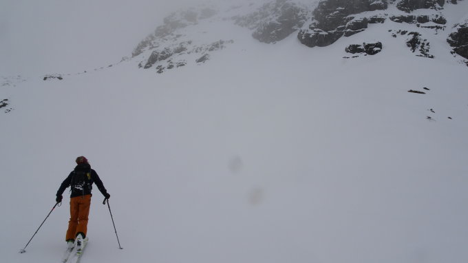 Im Aufstieg im Couloir das ja sehr steil ist dann eher Knie- Hüfttief eingesunken, der Nebel wurde plötzlich so dicht. Ein paar Stapfer noch dann wären wir oben gewesen. Die Wechte konnte man nicht mehr gut einschätzen darum entschieden wir uns zur Umkehr kurz vor dem Ziel.