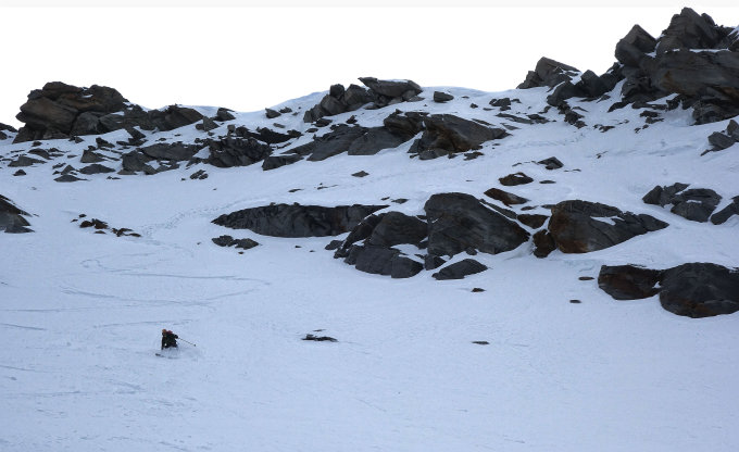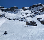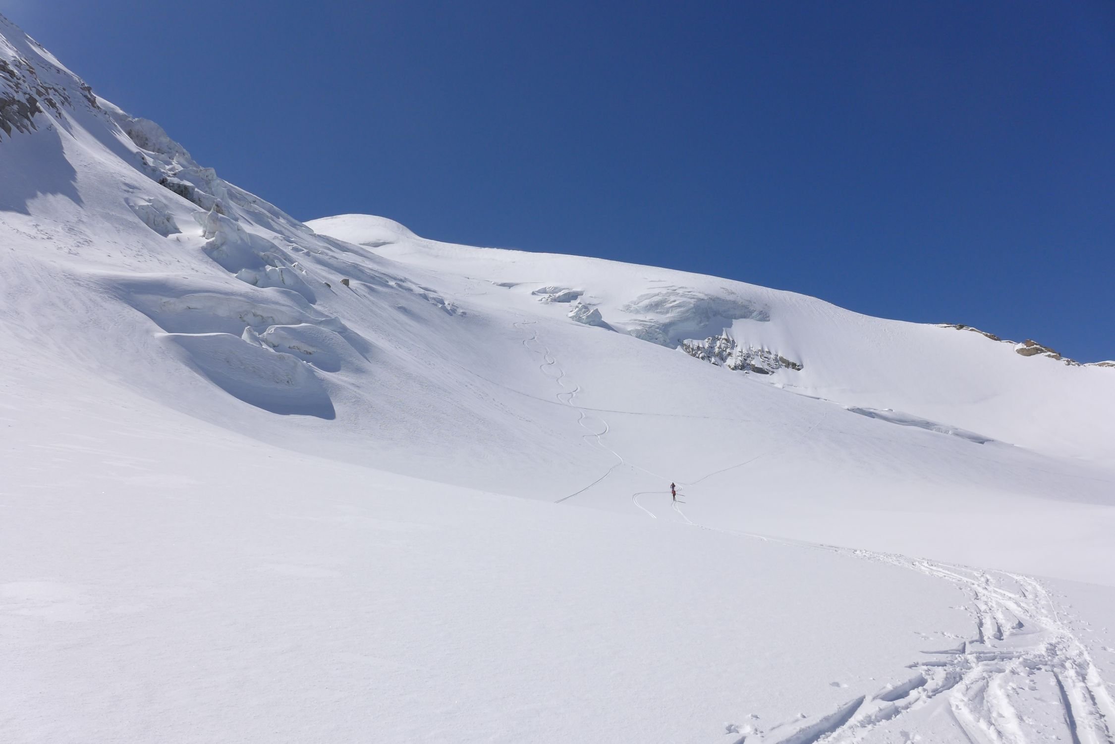Am 15.05. sehr gute Verhältnisse. Aufstieg zum Gd. Paradiso pistenhart aber bester Pulver in der Abfahrt via Glacier de Laveciau. Dank des kühlen Windes ist der Schnee kaum aufgeweicht. Der Gd. Paradiso war zwar völlig überfüllt, jedoch wird man durch vollständige Einsamkeit belohnt, sobald man sich von der Normalroute fernhält. Schnee ab ca. 2700m. Ein Paar Turnschuhe im Gepäck schonen die Skistiefel.