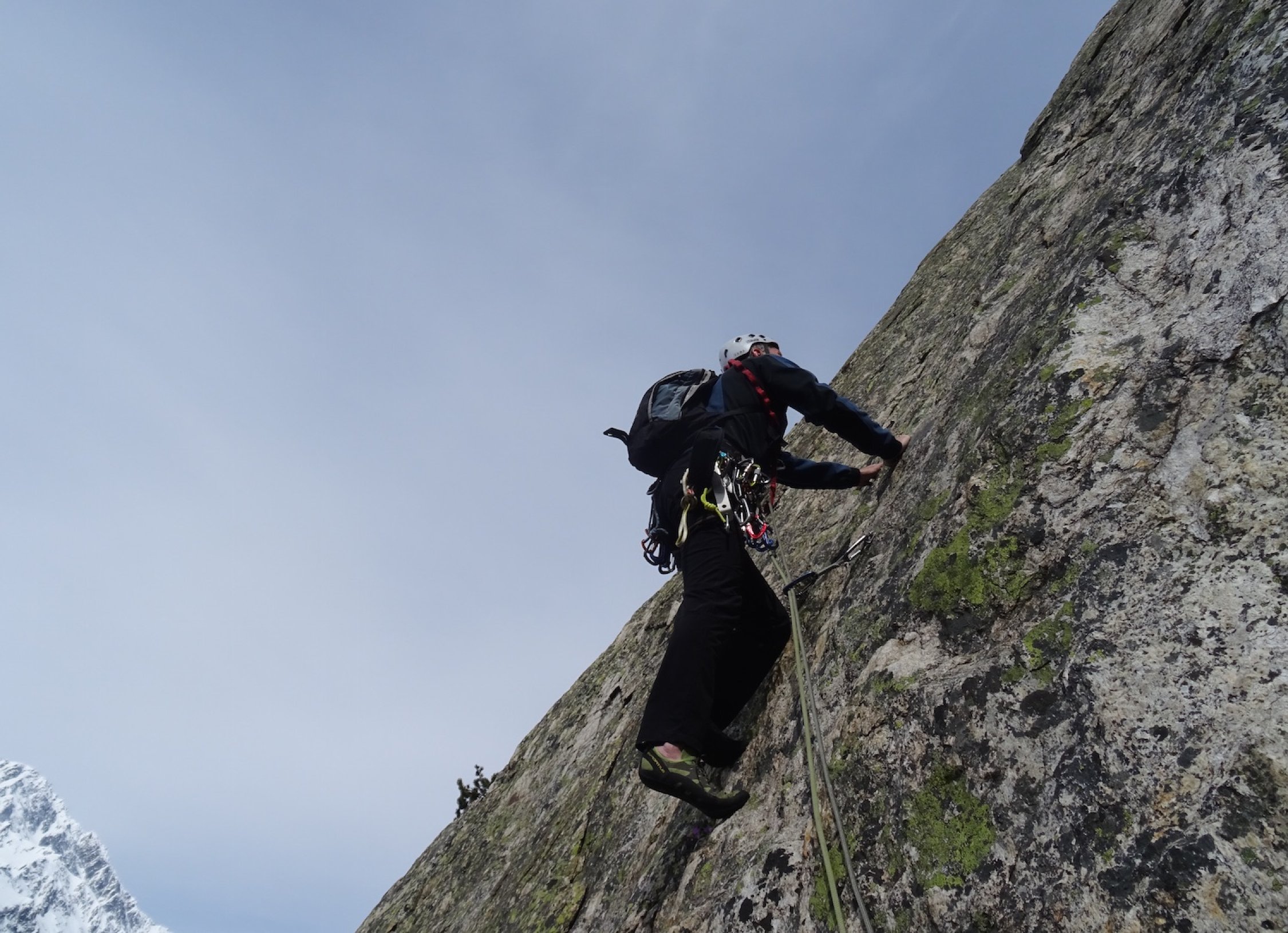 Heute kalter Föhn. Der Zustieg führt noch über 200m Lawinenschnee und die Einstiegsrinne für alle Routen ist noch gut mit Firn gefüllt.