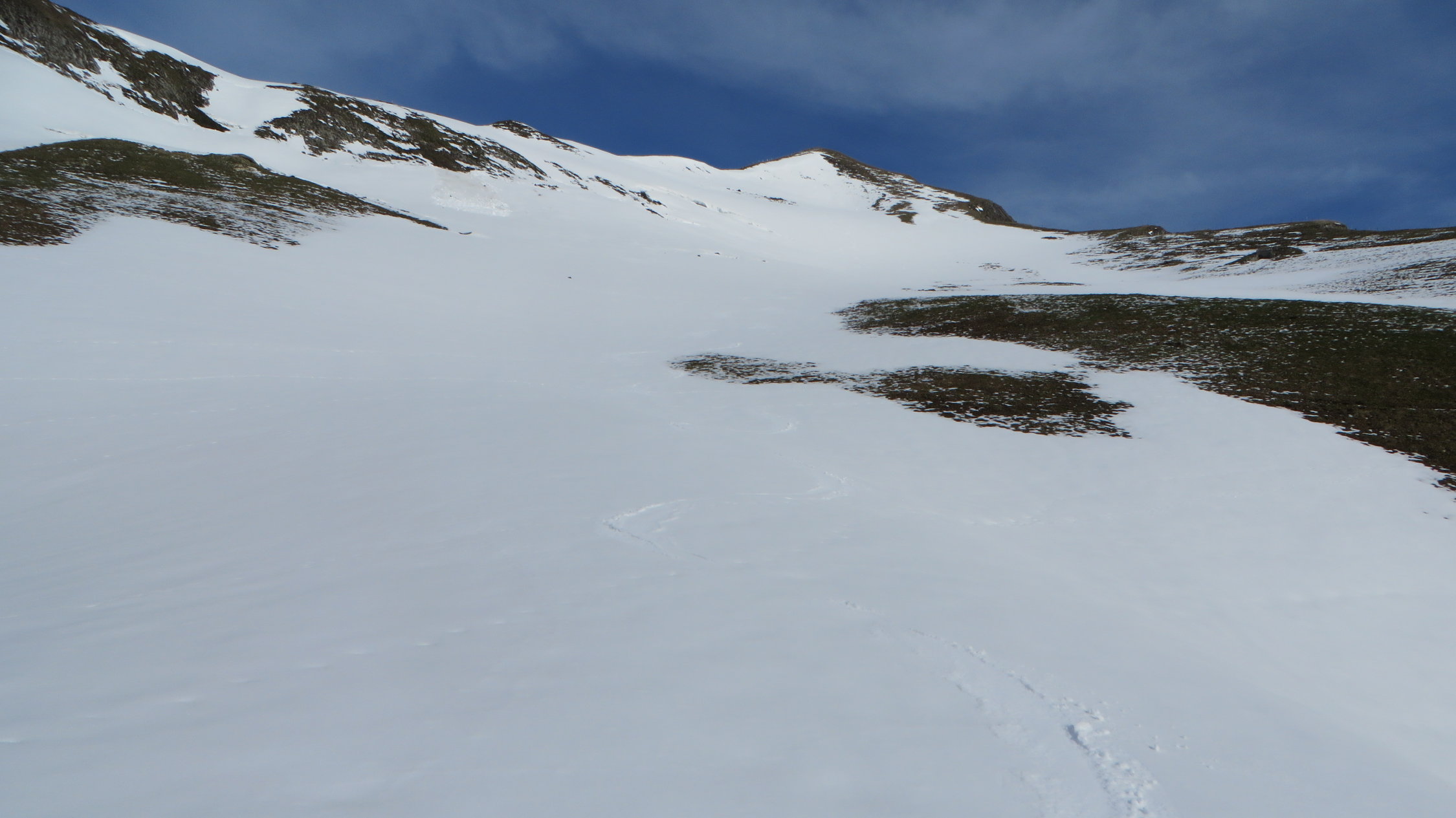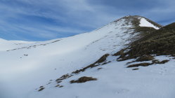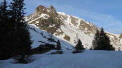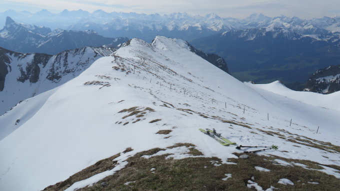 Vom Reservoir der unteren Gantrischhütte bei guter Routenwahl noch durchgehend mit Fellen begehbar.