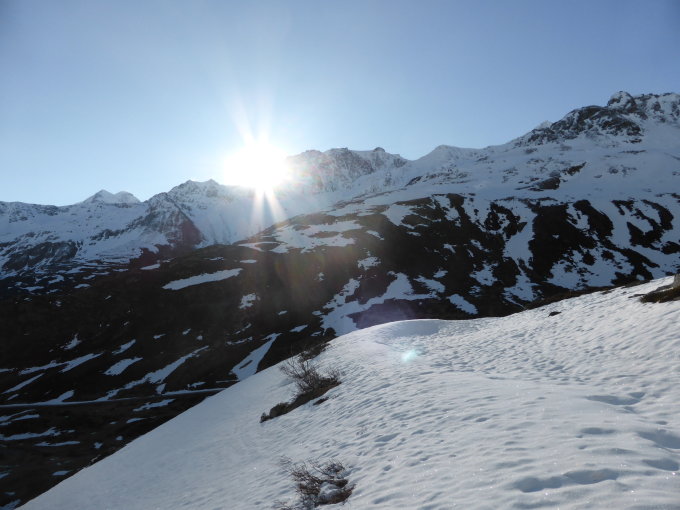 Zwei Punkte sind dennoch zu erwähnen; der Wetterbericht meldete gut 30 km/h Ostwind (Bise) = vor Ort war es praktisch Windstill, auch auf dem Gipfel = SUPER GIPFELRAST. Das SLF meldete für den westlichsten Teil der südwalliser Berge auf 2500m bis 60cm Neuschnee der vorangegangenen Tage = vor Ort war auf besagter Höhe ca. 2-3cm Neuschnee.