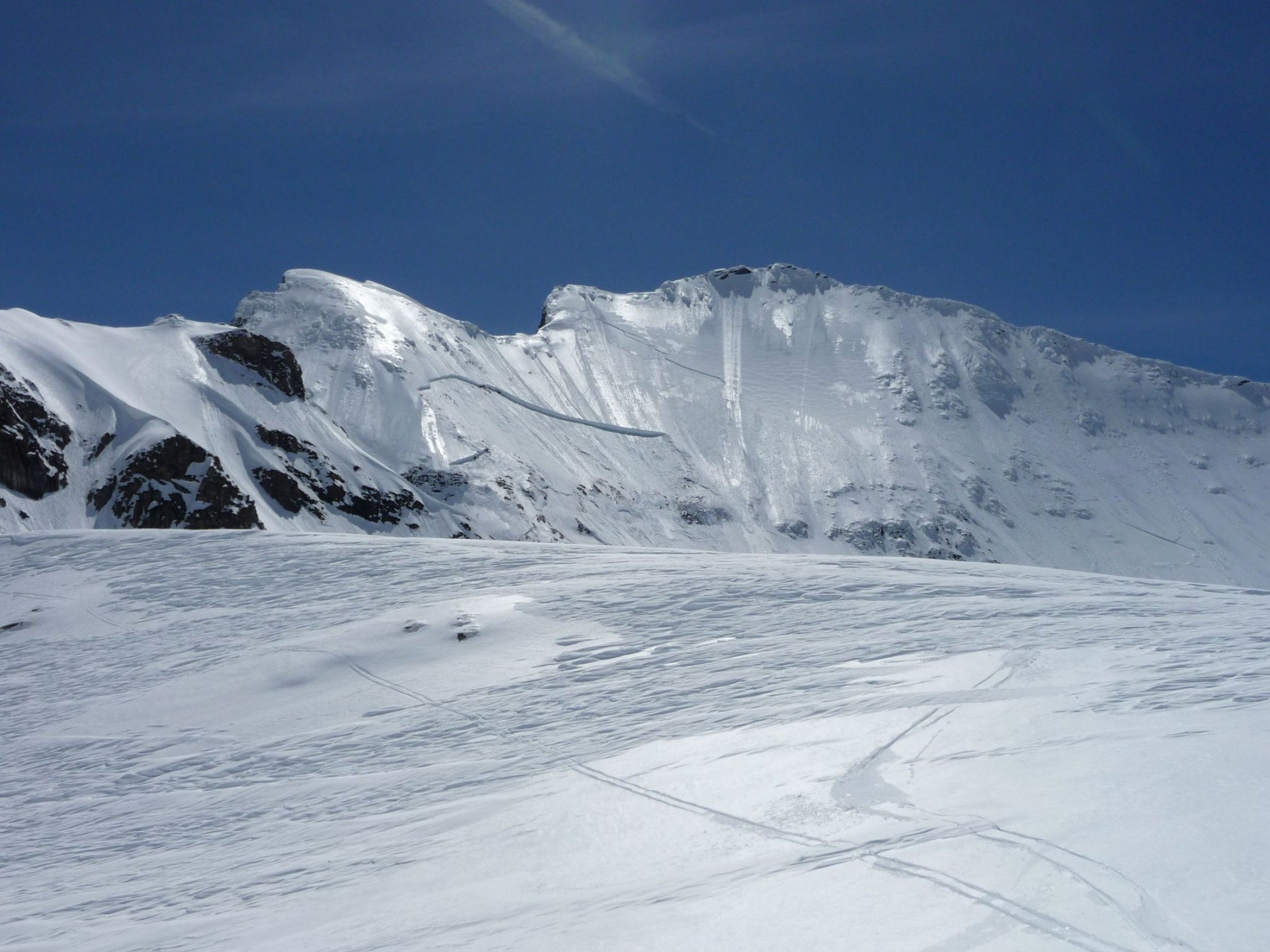 Ski getragen bis 2050m. Abfahrt war dann bis 1900m möglich. Schneedecke durchgehend und tragend. Bei der Querung unter dem Piz Canal waren einige Lawinenkegel vom Vortag zu queren. Ebenso ist aus der Terri NW-Wand eine dicke Lawine abgegangen, die die Querung mit dicken Brocken behindertet. In der Nordwandroute direkt zum Gipfel liegt noch dick Schnee mit Trittschneecharakter, der demnach aber instabil sein könnte.