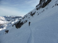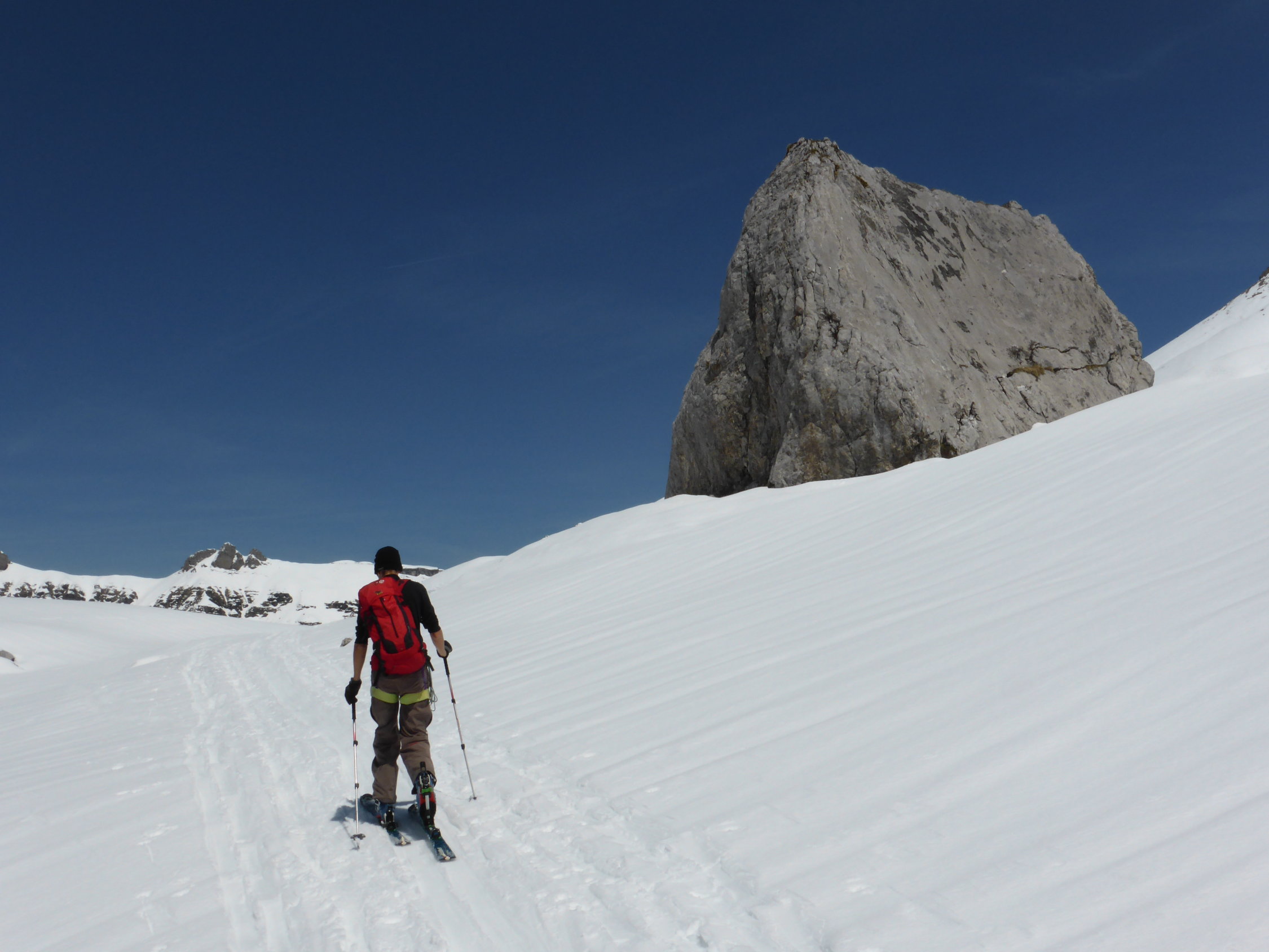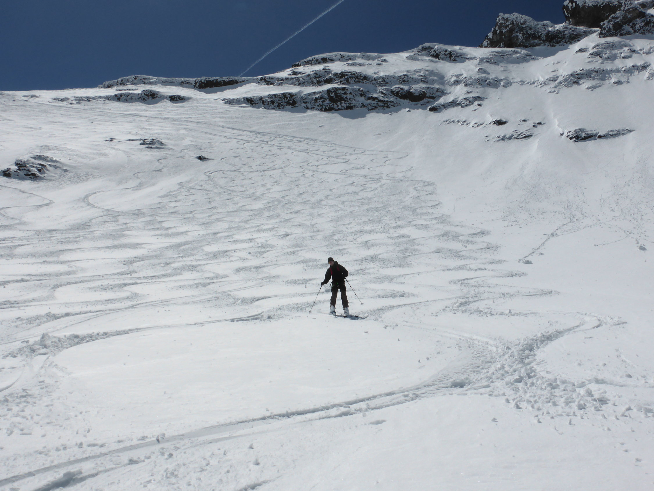 Ankunft auf dem Klausenpass um 6.00 Uhr. Parkplatz auf dem Pass bereits voll. Start auf den Skis bereits ab Parkplatz. Schnee tragend, ab Mittelteil Pulverschnee. Der Aufstieg zur Chammlilücke im Steilhang war durch einen Lawinenabgang beeinträchtigt. Rund 50 bis 100 Meter musste man die Skis tragen.