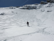 Im oberen nordseitigen Hang des Schärhorn Stollenbildung auf den Skifellen. Aufstieg grösstenteils ohne Harscheisen möglich. Ab Skidepot Gipfelaufstieg problemlos bei gutem Trittschnee. Steigeisen nicht nötig. Abfahrt bei sehr guten Verhältnissen im oberen Teil, ebenfalls Steilflanke gut befahrbar. Im unteren Teil war die Schneedecke bereits etwas aufgeweicht. Gegenanstieg und Querung zum Klausenpass mit Fellen auf den Skis.