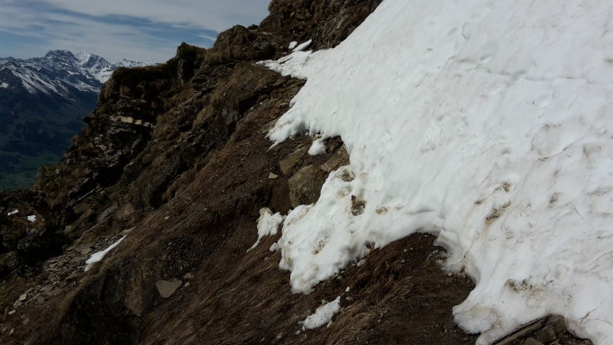 Bis Schwandegg alles iO, ab ca 1750m erster Schnee auf dem Weg, aber gut zu gehen bis ca auf 2000m bevor man in die Gipfelflanke kommt. Hier hat es eine sehr exponierte Stelle in ca 50 grad steilem Gelände. Da der Schnee sehr weich war und es auch unterhalb vom Schnee nass und pflotschig war, habe ich hier umgedreht. Obwohl nur 3-4 Schritte, ein Sturz an dieser Stelle hätte fatale folgen, unterhalb gehts "s Loch ab"