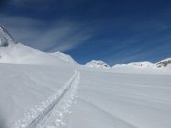 Sehr gute Verhältnisse beim Start in Steingletscher, ganze Route noch gut eingeschneit. Gefrorene Tragende Oberfläche. Gletscherabbruch noch gut eingeschneit. Habe die Tour zum ersten Mal gemacht, mit Abfahrt bis zur Tierberglihütte.