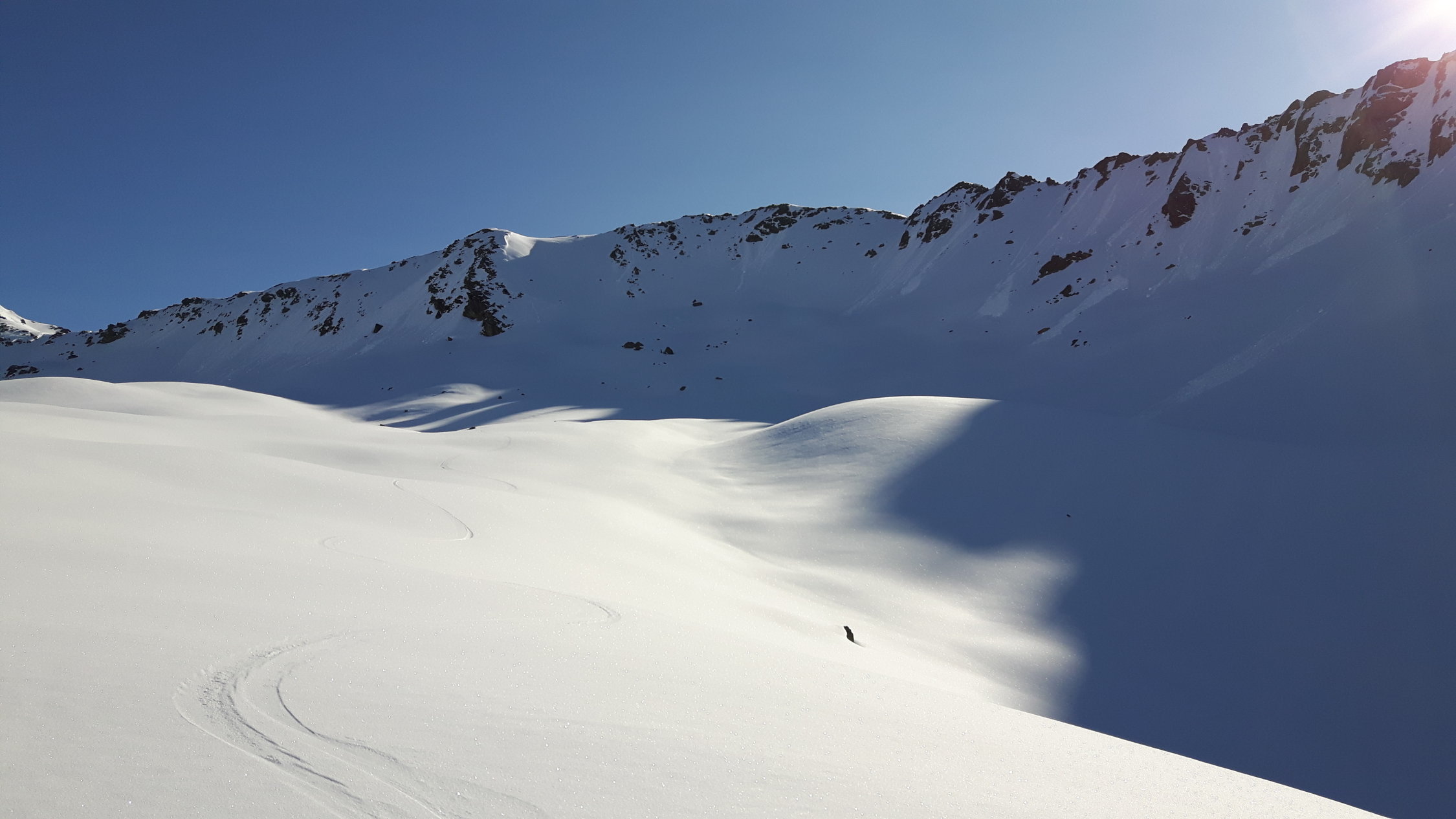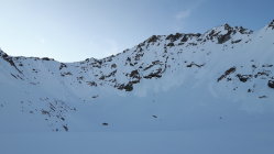 Ein paar eingeschneite Rutsche, sonst nur oberflächliche Lockerschneerutsche. Schien recht stabil zu sein in der Früh. Keine Wummgeräusche.