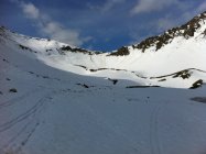 Der Neuschnee vom Montag (ca. 15 cm) rutscht auf der Oberfläche des Altschnees. Die geplante Abfahrt in der Nordflanke hätte im Fahren zu schwer abschätzbarer Rutschbildung geführt.