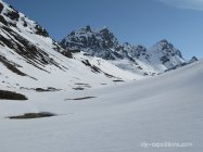 Durchgehende Schneedecke ungefähr ab 2200 m oder kurz nach der Alpe Fless Dadaint. Schnee ist gefroren und damit relativ schnell zu begehen. Harscheisen sind von Vorteil. Der Gipfelhang ist ebenfalls hart und ohne sichtbare Rutsche (die Osthänge des benachbarten Piz Valtorta waren hingegen übersät mit kleinen, langauslaufenden Lawinen). Aufstieg bis zum Gipfel mit Ski möglich. Abfahrt (10.30): etwas hart aber gut zu fahren, weiter unten etwas weicher und körniger, aber immer noch gut.