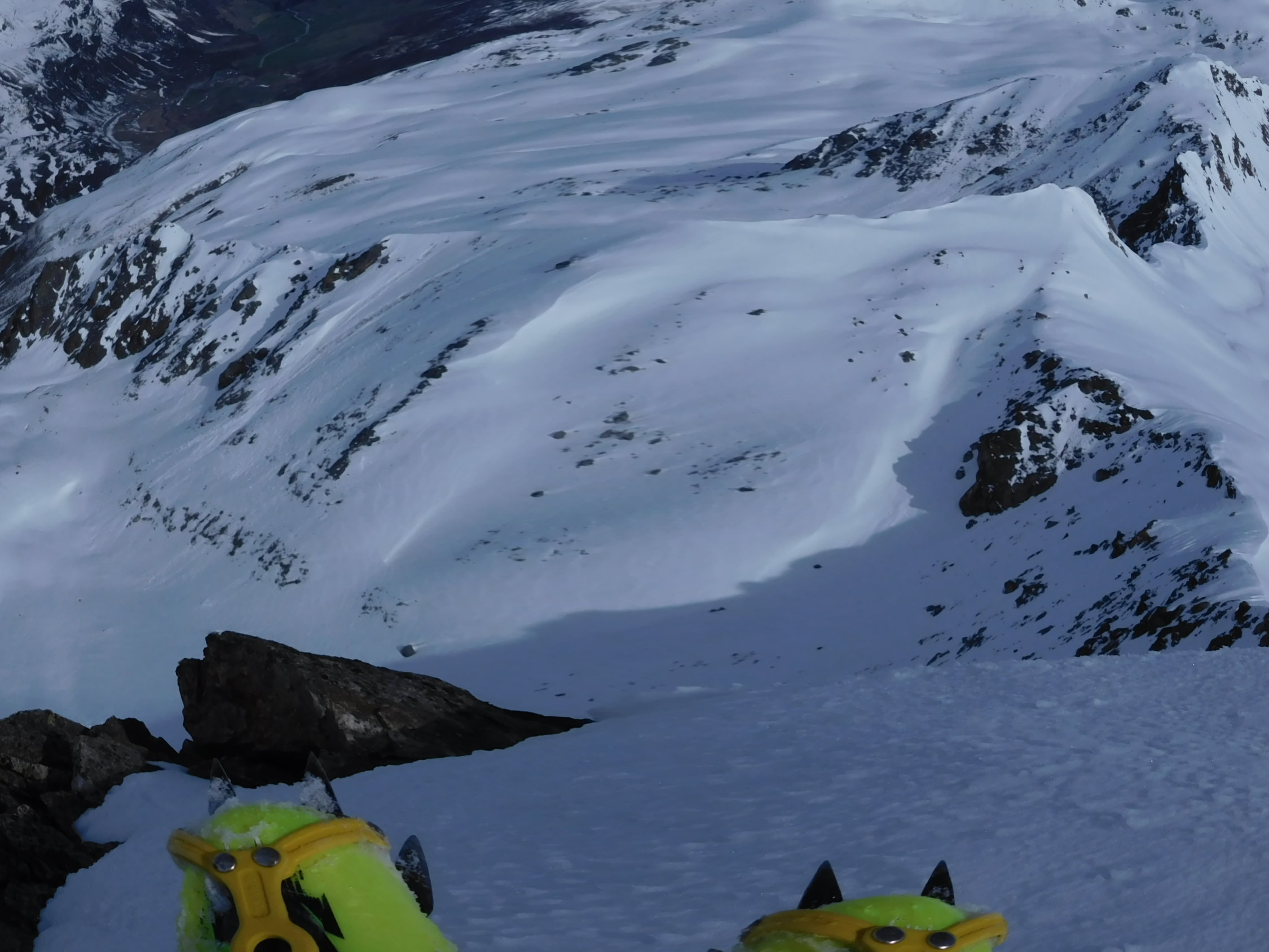 Abfahrt über Jörigletscher zum See noch tragende Schneedecke, der Gegenaufstieg zur Wäschchuchi, einer Einsattelung vom Punkt 2771 m, da war der Schnee schon recht weich, nach kurzer Rast erfolgte die Abfahrt am 10.15 Uhr bei besten Frühlingsschnee zur Flüelastrasse.