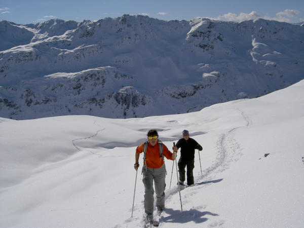 Jörihorn und Schwarzhorn könnten noch bessere Schneeverhältnisse aufweisen als das Pischahorn, v.a. unten. Flüelapass offen, Winterausrüstung empfehlenswert.