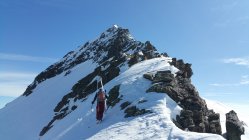 Start bei Hospiz vom Simplon Pass aus. Man muss rund 10 Minuten Skis tragen. Wir sind bis zur Monte Leone Hütte aufgestiegen und dann oberhalb der Hütte auf den Westgrat gestiegen. Nun mit aufgebundenen Skis den Grat entlangkrakseln bis man zu einer geeigneten Stelle kommt um das Skidepot zu machen. Weiter auf dem Grat und manchmal in die Südflanke ausweichend aufsteigen bis auf den Gipfel.